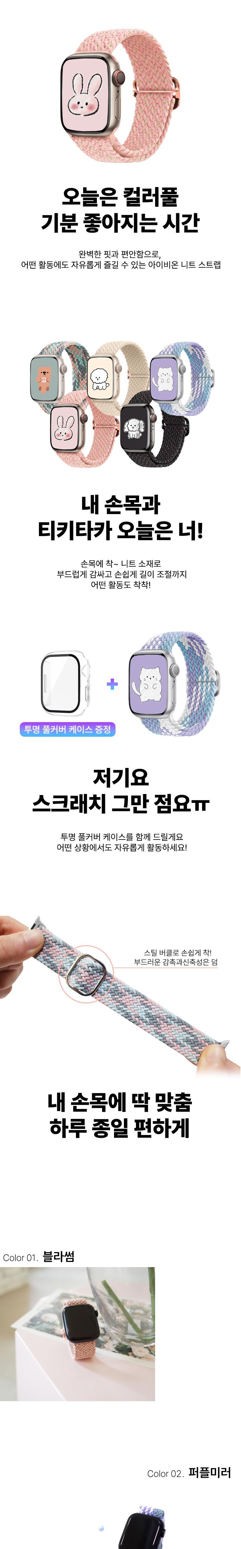 아이비온 애플워치 솔로 루프 니트 스트랩 + 투명 풀커버 케이스