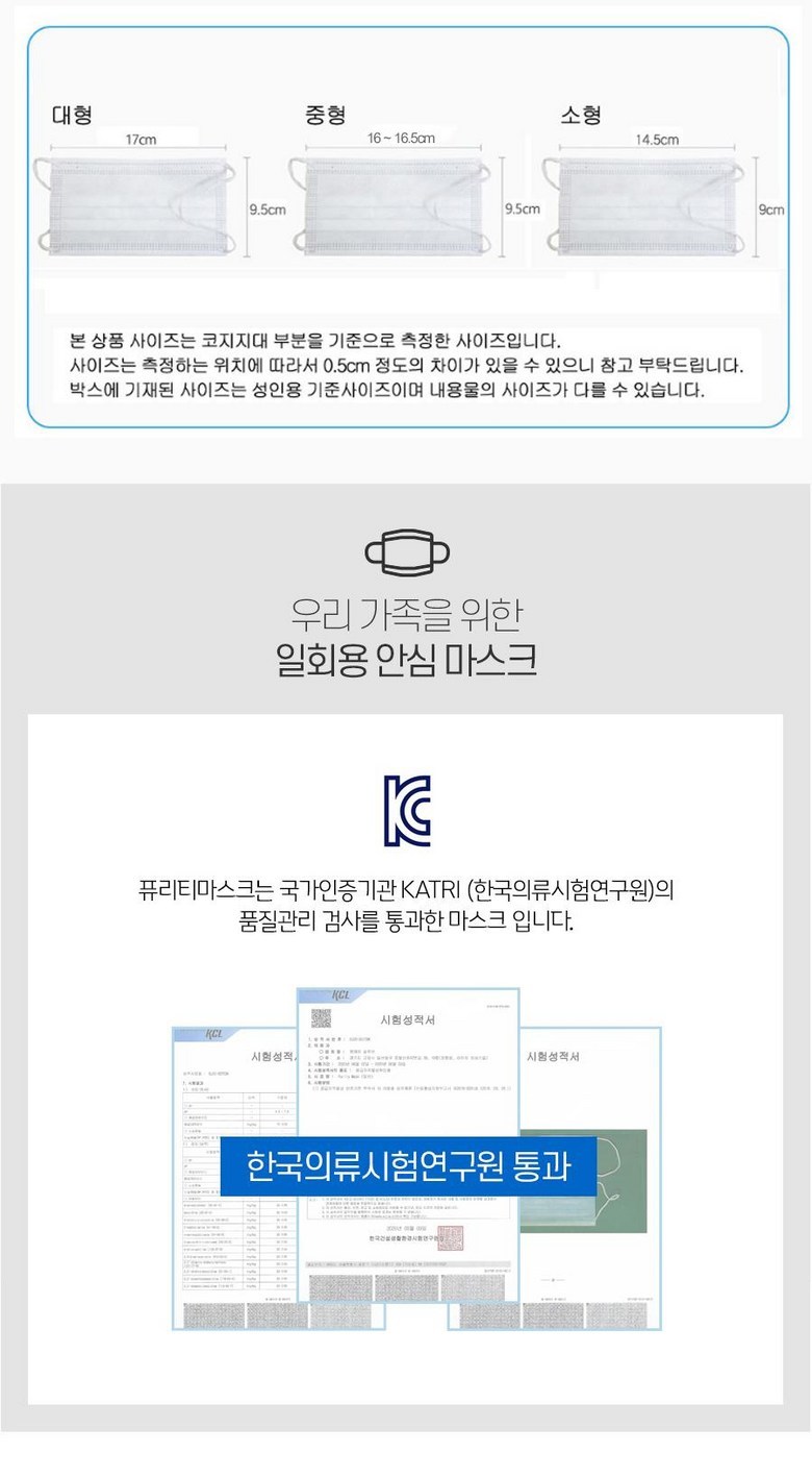 - 마스크 사이즈: 아동/학생/성인