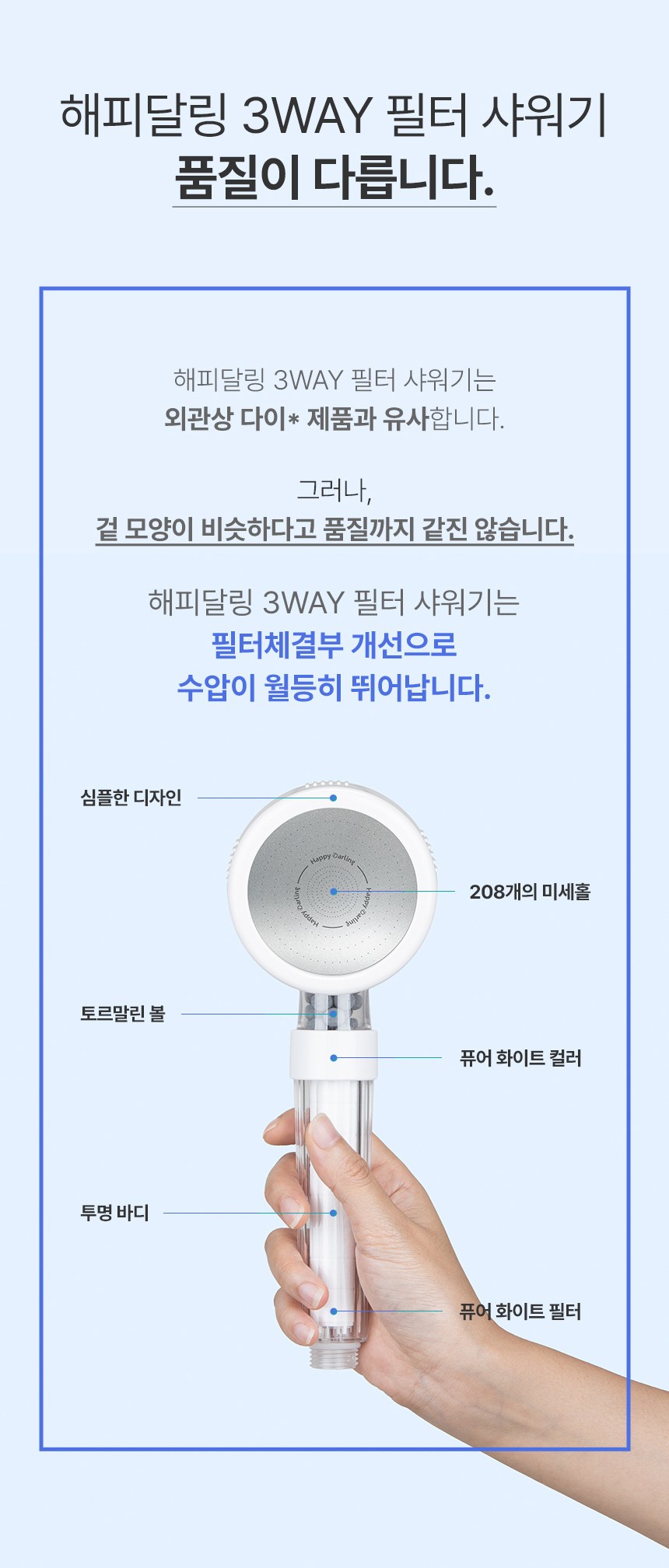 | 품명 및 모델명 | 해피달링 3WAY 샤워기+필터 4p 세트 | 인증/허가 사항 | 해당없음 |