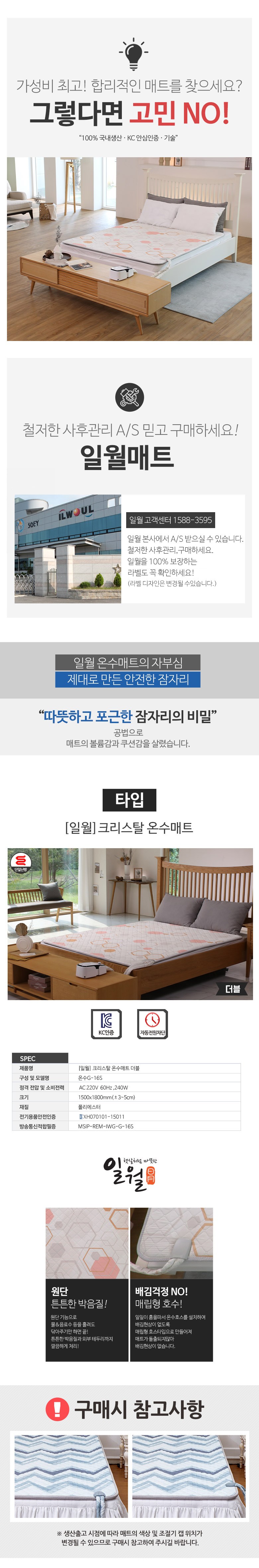 | 품명 및 모델명 | 일월 크리스탈 온수매트 더블/온수603S | KC 인증정보 | XH070101-15011X/ MSIP-REM-IWG-G-16S |