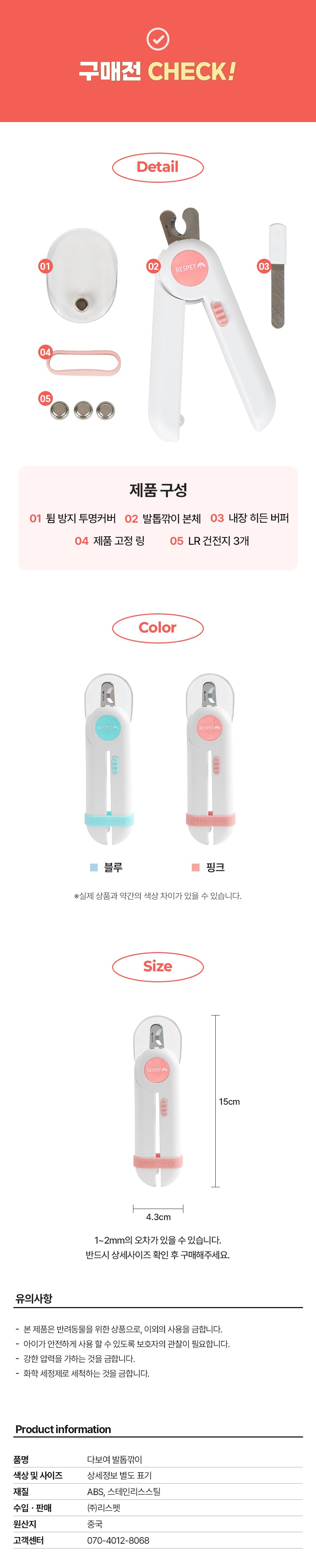 | 품명 및 모델명 | 리스펫 다보여 반려동물 발톱깎기 블루 | 인증/허가 사항 | 해당없음 |