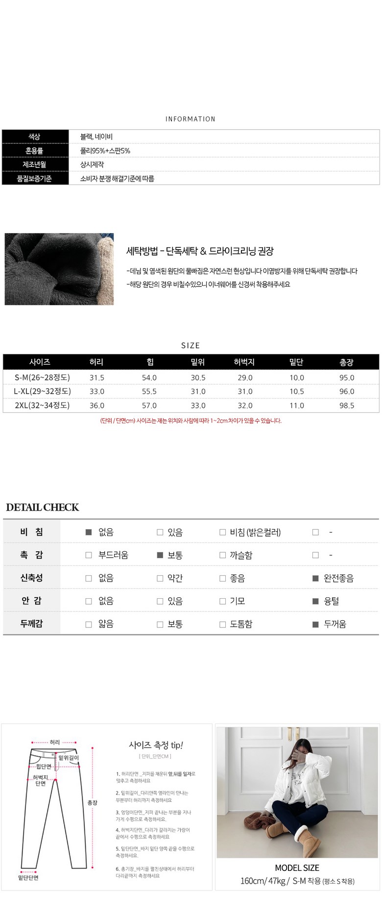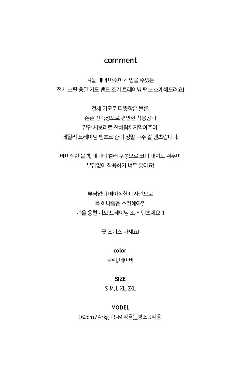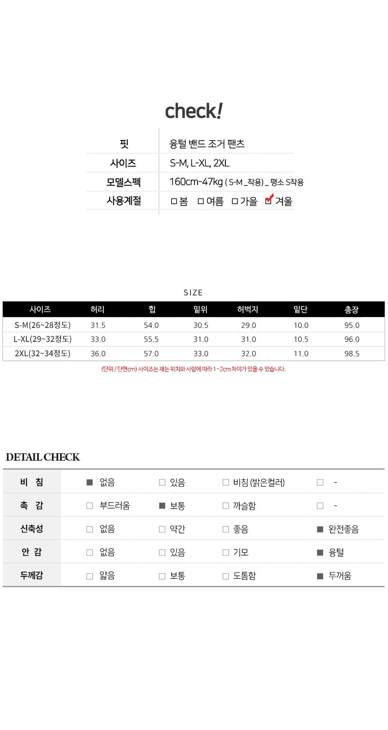 - 하의 밴딩 유무: 밴딩(고무줄) 있음