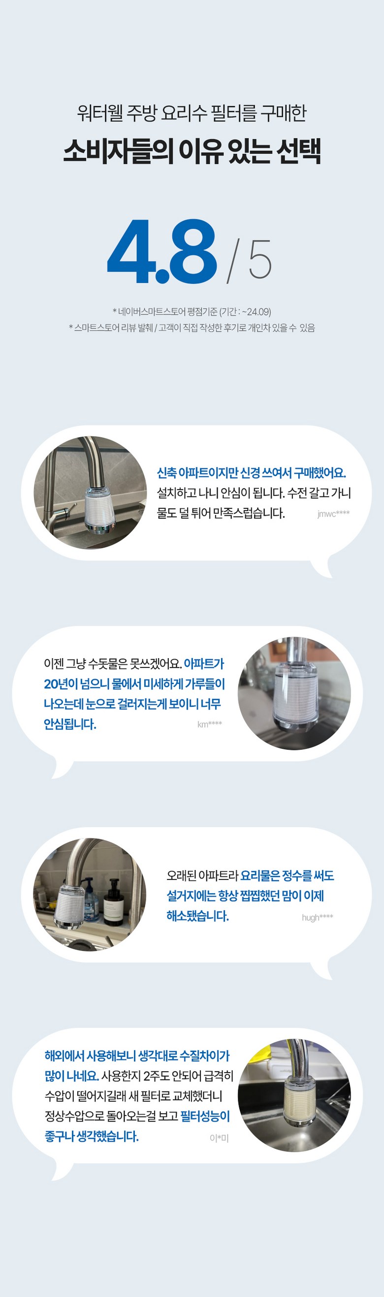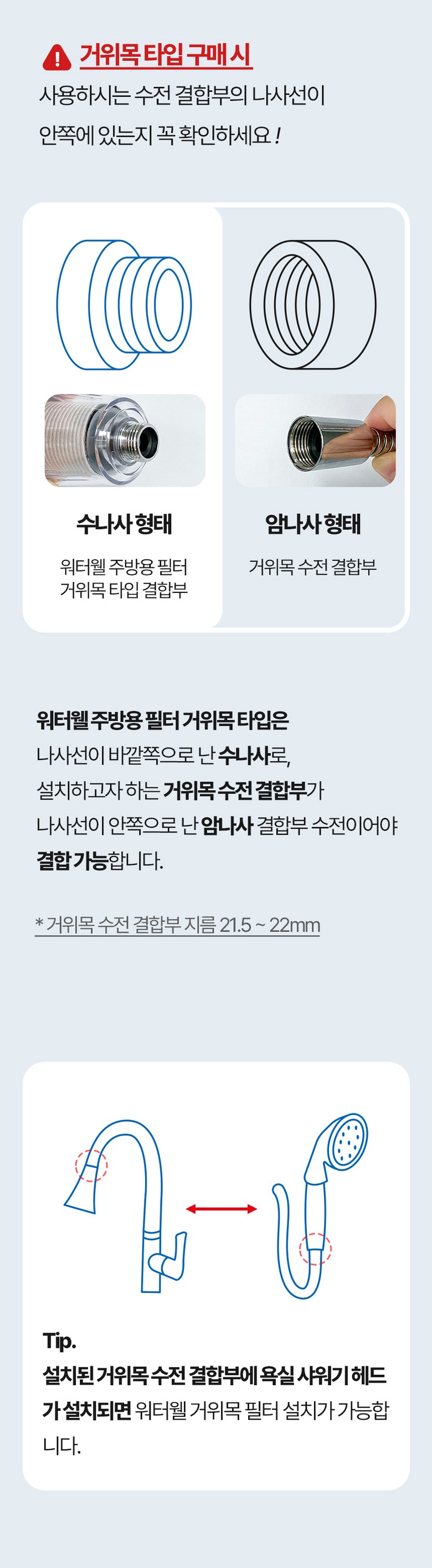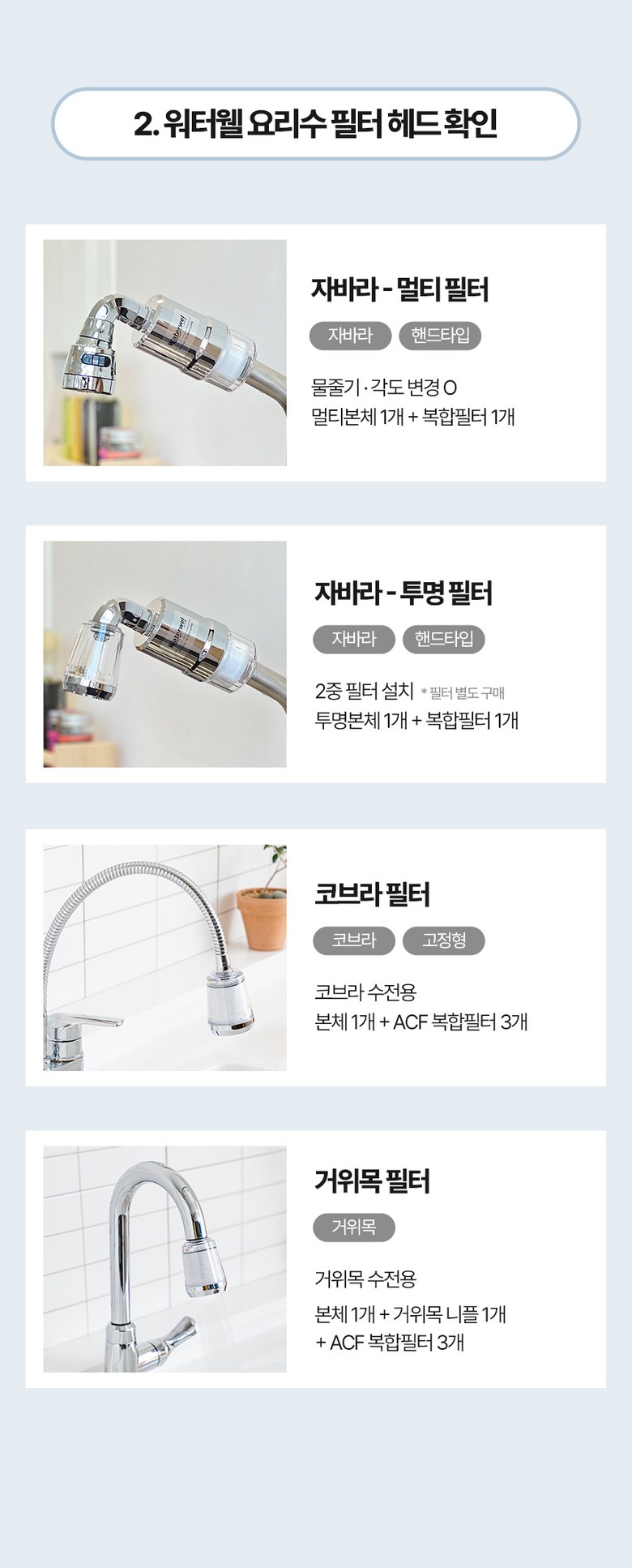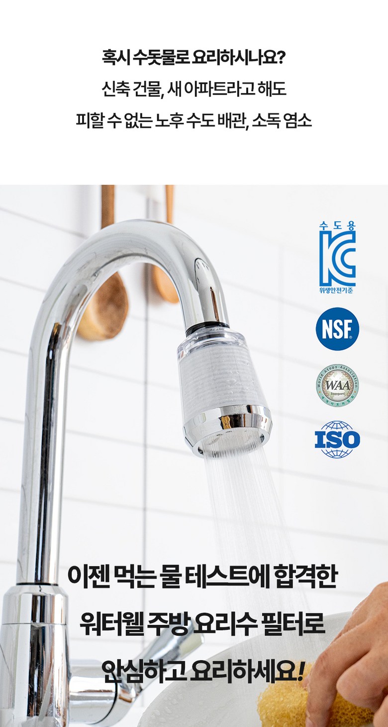 | 품명 및 모델명 | 워터웰 주방 거위목용 싱크대수전 필터 | 인증/허가 사항 | 상품 상세페이지 참조 |