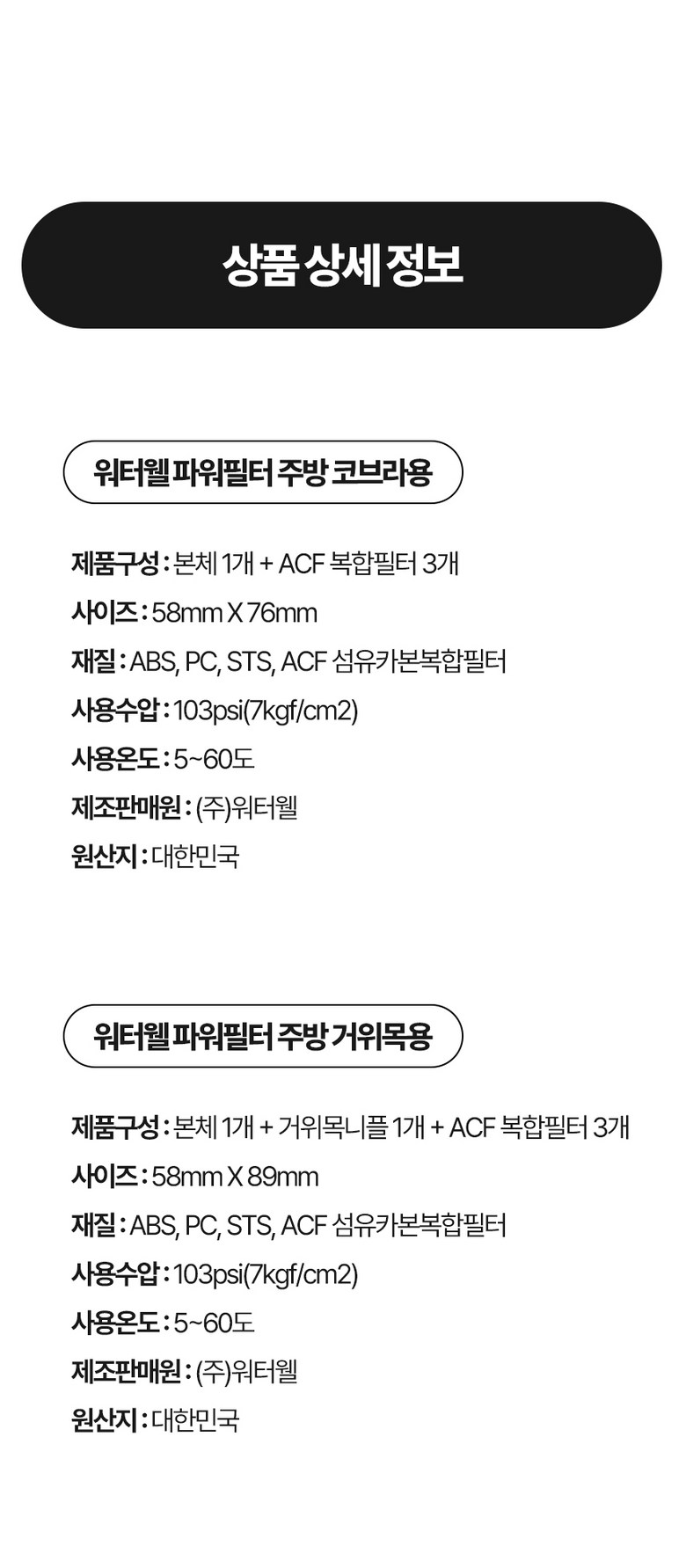 | 제조국(원산지) | 대한민국 | 제조자(수입자) | (주) 한중커머스 워터웰 |