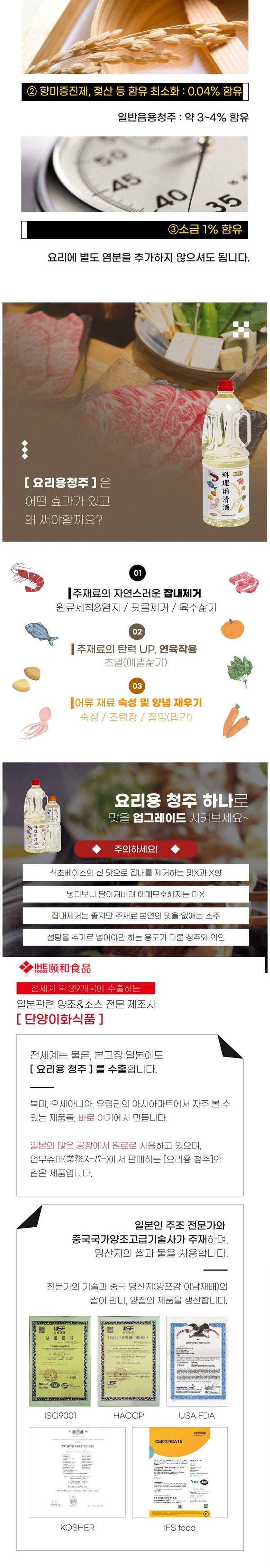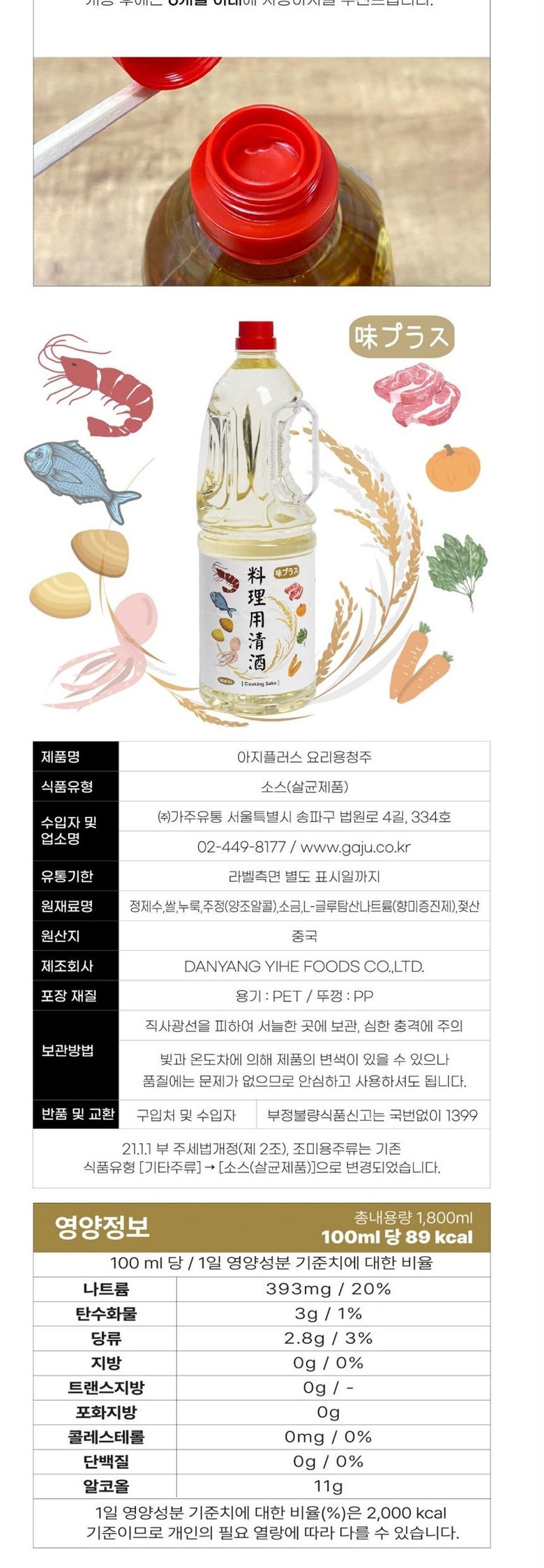 | 품목 또는 명칭 | 요리용청주 | 포장단위별 내용물의 용량(중량),수량,크기 | 1.8L |