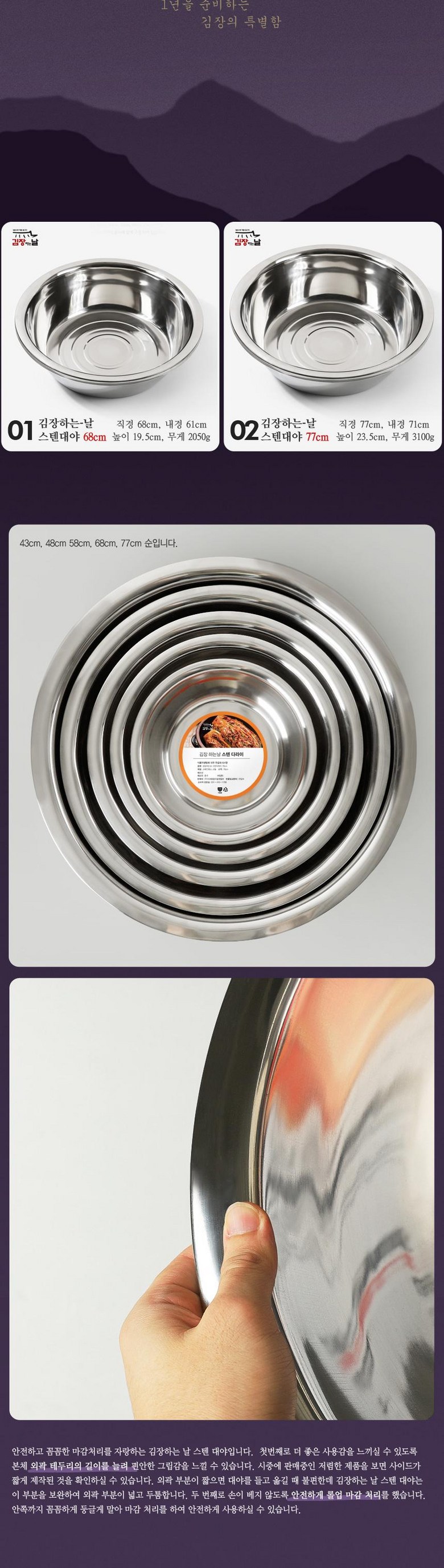 대야는 부피 및 무게가 많이 나가