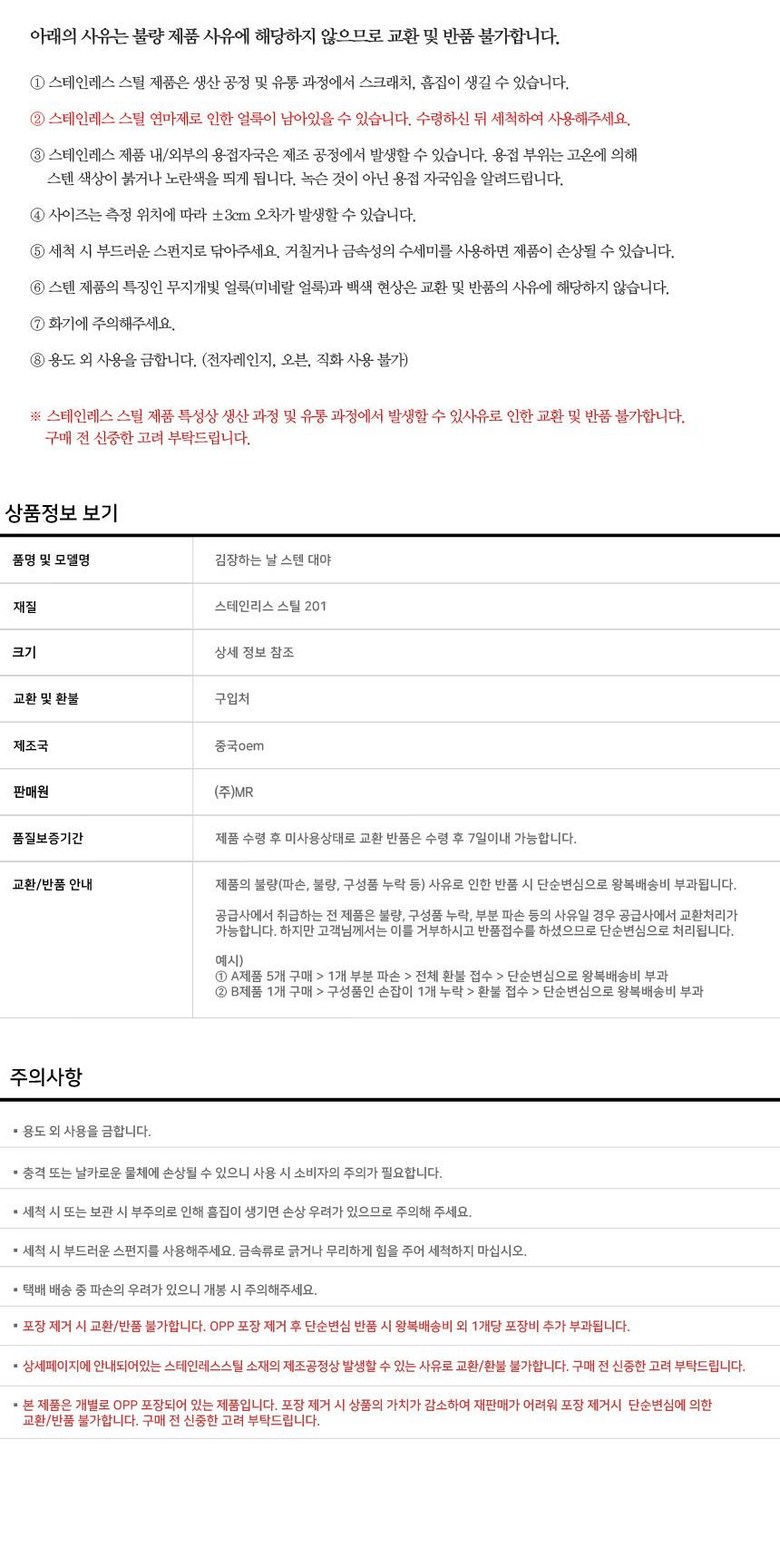 - ㆍ교환/반품에 관한 일반적인 사항은 판매자가 제시사항보다 관계법령이 우선합니다.