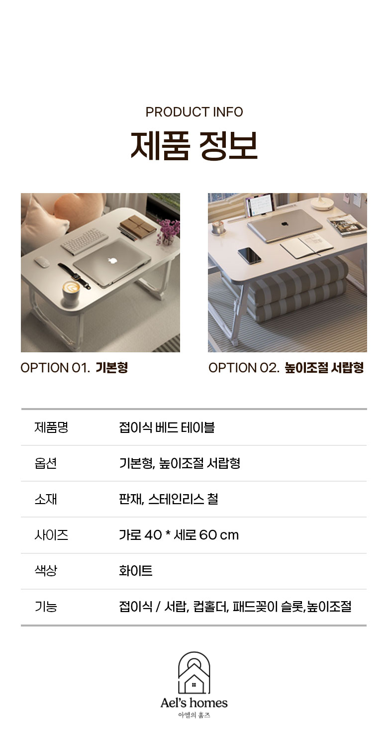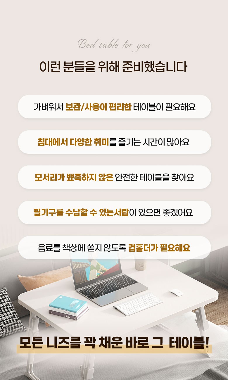 | 품명 및 모델명 | 다목적 접이식 베드테이블 AHBT24001 | 인증/허가 사항 | 상품 상세페이지 참조 |