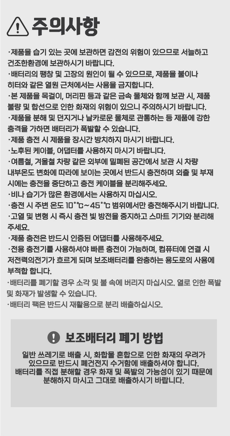 - 충전/잔량 표시 기능: 충전/잔량 표시 가능