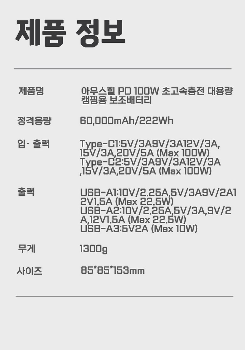 | 정격전압, 소비전력 | 22.2V/60000mAh | 출시년월 | 202501 |