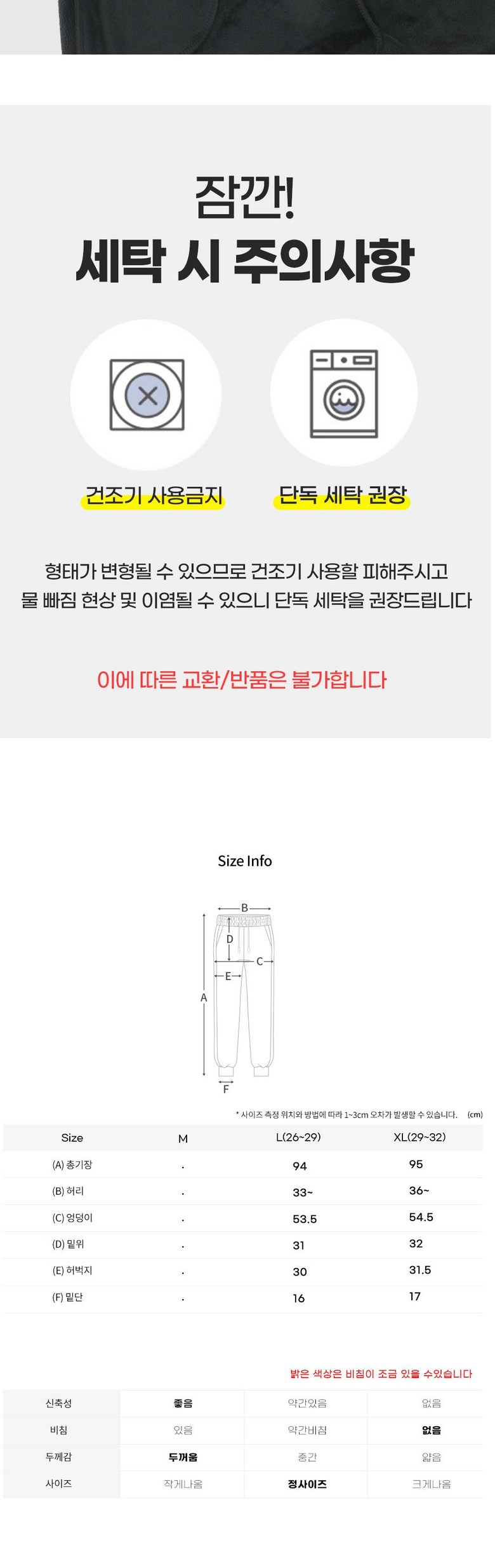- 하의 밴딩 유무: 밴딩(고무줄) 있음