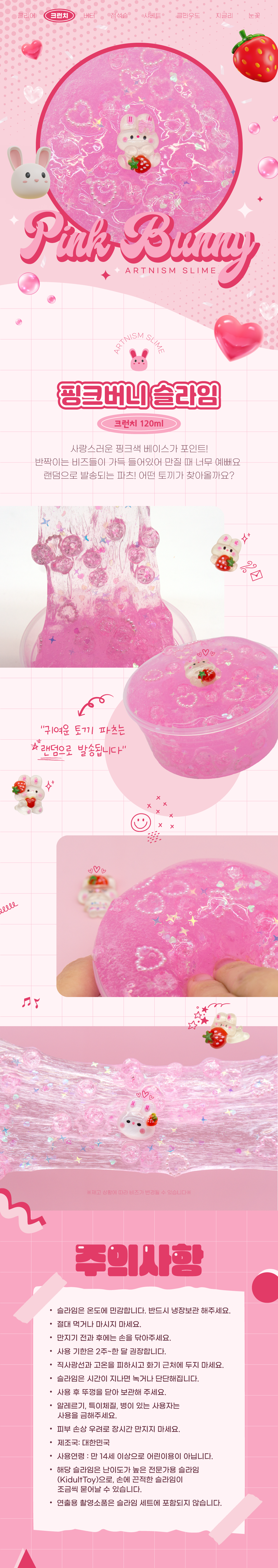 | 품명 및 모델명 | [아트니즘슬라임] 핑크버니 수제슬라임 120ml | 인증/허가 사항 | 해당없음(14세 이상) |