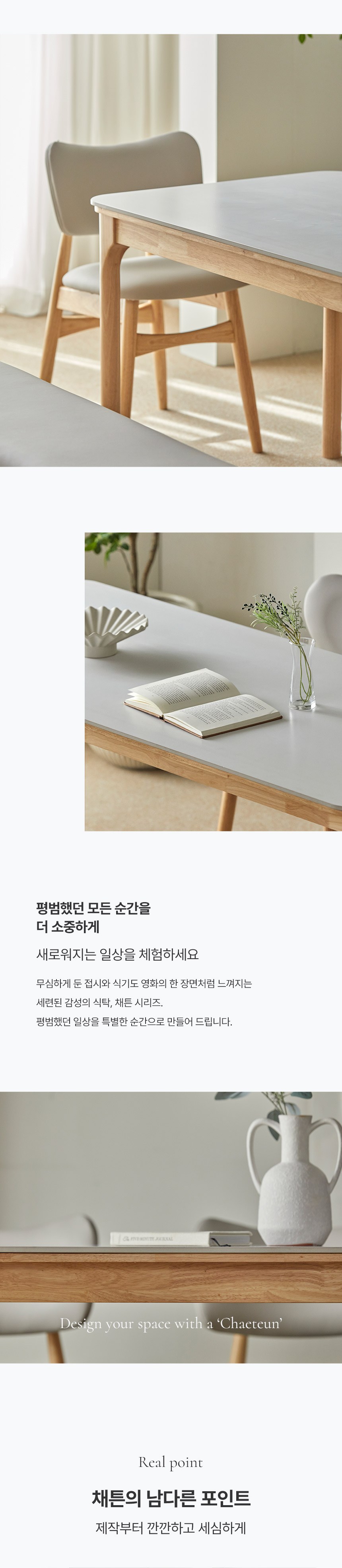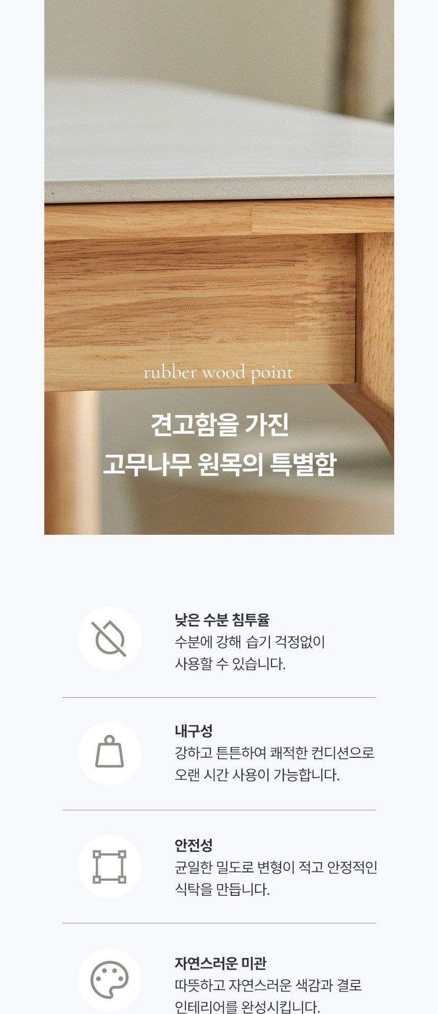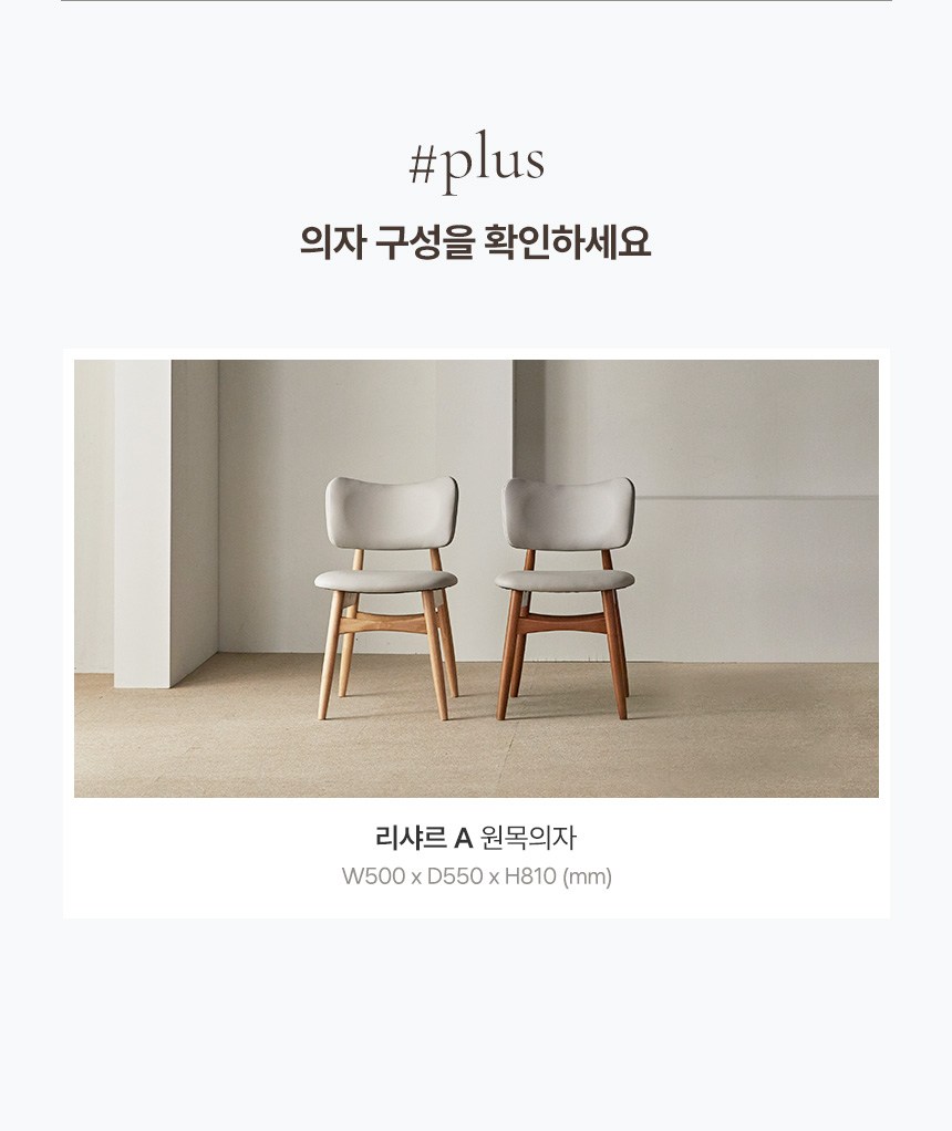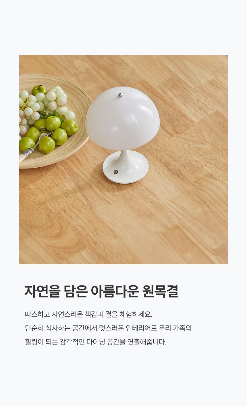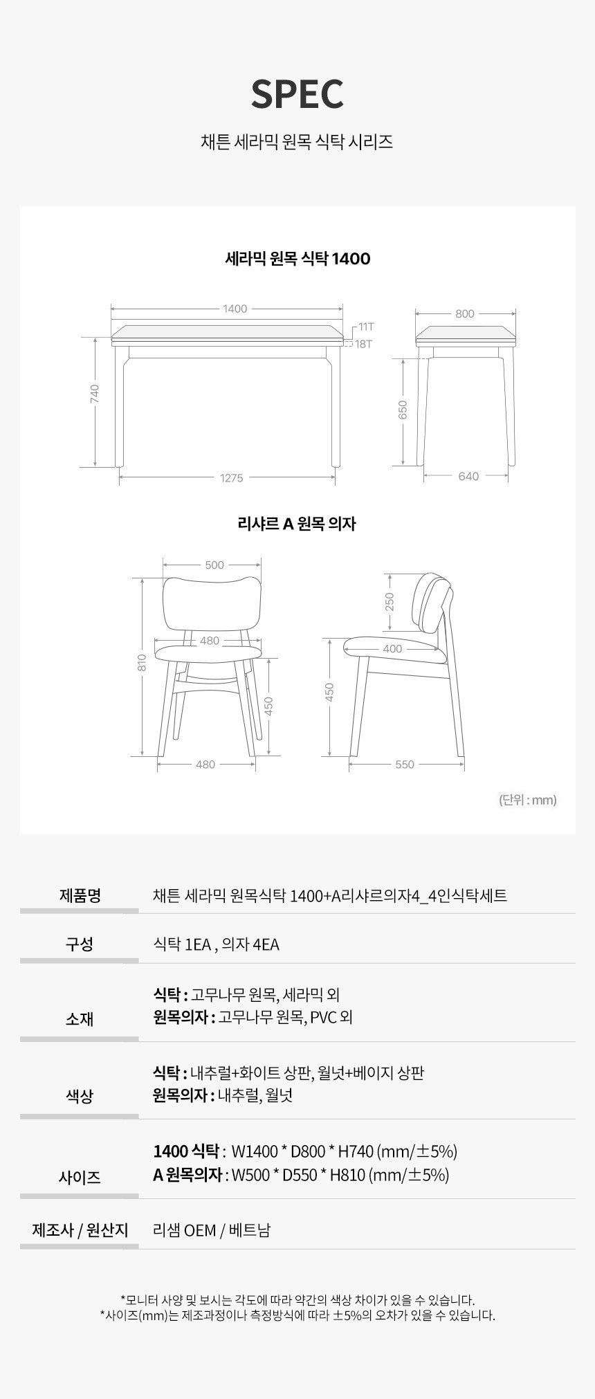 - 사이즈: 식탁(1400 x 800 x 740 mm), 의자(500 x 550 x 810 mm)