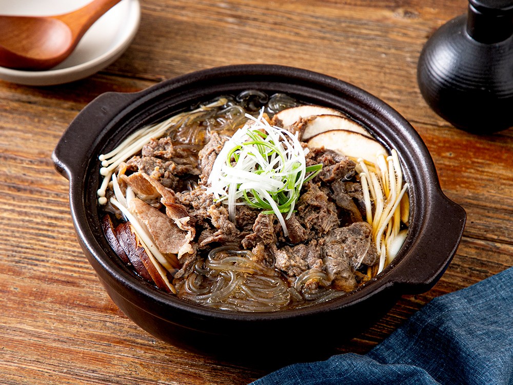 자박자박한 국물이 특징인 서울식 소불고기전골. 양념부터 고기, 당면까지 준비해야 할 재료부터 만만치 않은데요. 필요한 재료가 모두 동봉된 소불고기전골을 소개할게요. 짭조름하면서도 달착지근한 풍미가 쏙쏙 스며들었죠. 여기에 팽이버섯이 쫄깃하고 탱글탱글한 식감까지 더해준답니다.
