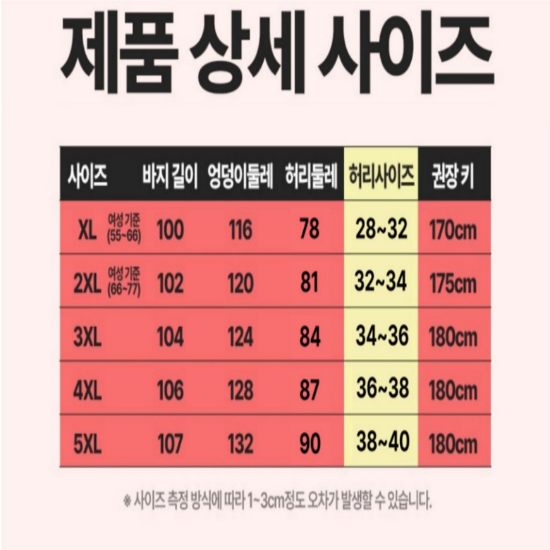 - 하의 사이즈: 남성 XXL 이상