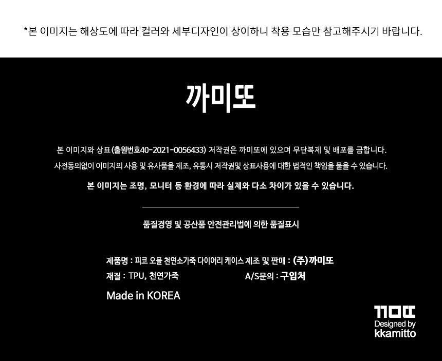 | 품명 및 모델명 | 까미또 피코 오플 천연소가죽 다이어리 케이스 | 인증/허가 사항 | 해당없음 |