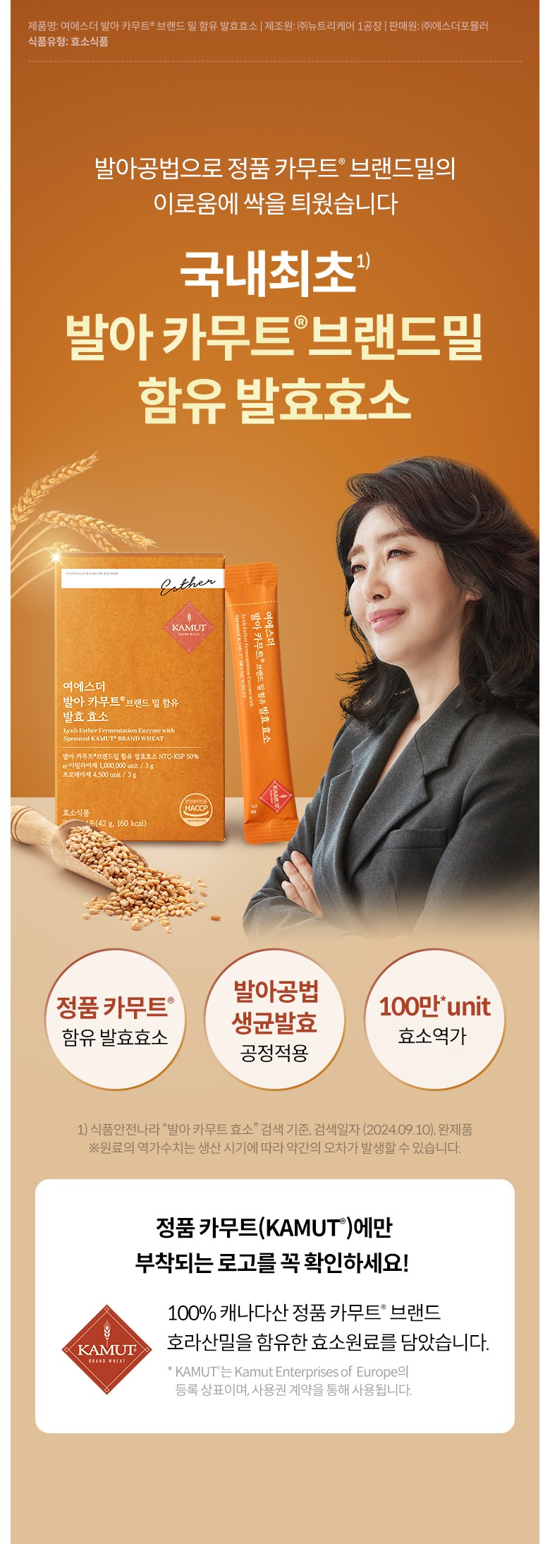 [본사직영] 여에스더 발아 카무트® 브랜드 밀 함유 발효효소(100만 unit 효소역가) 국민영양 프로젝트, 14회분, 5박스