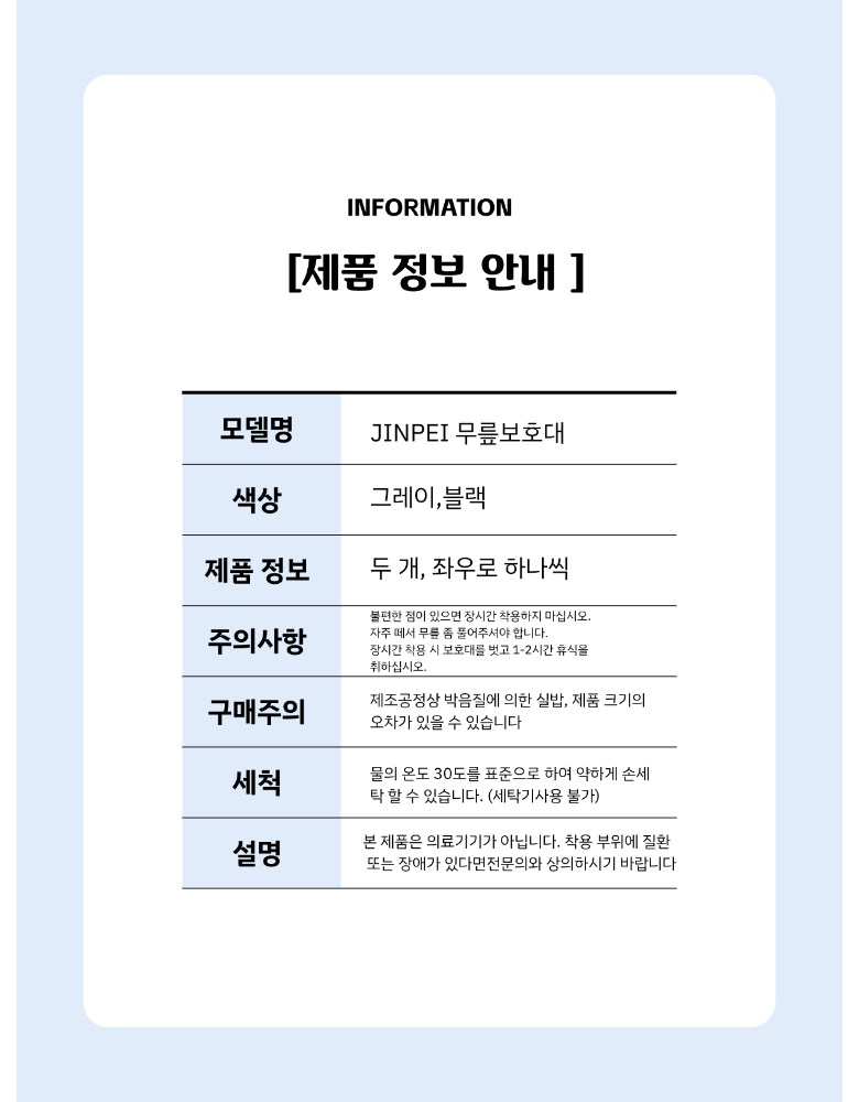 | 품명 및 모델명 | 무릎보호대 | KC 인증정보 | 상품 상세페이지 참조 |