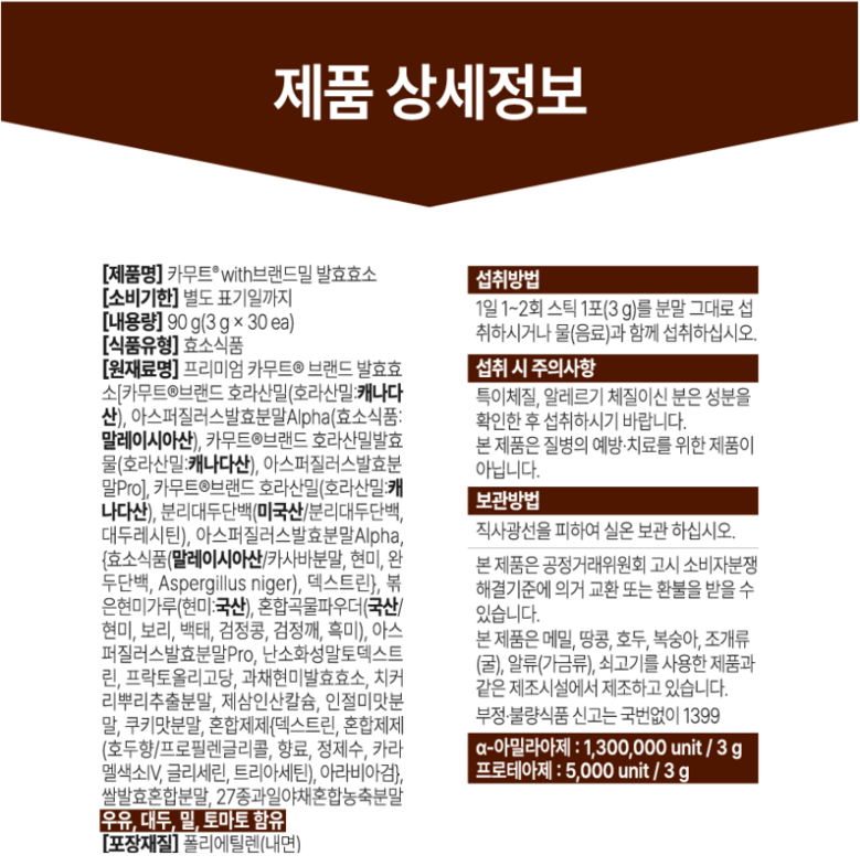 *굵은 카무트입자로 제조되어 물없이 드시기 편하시며