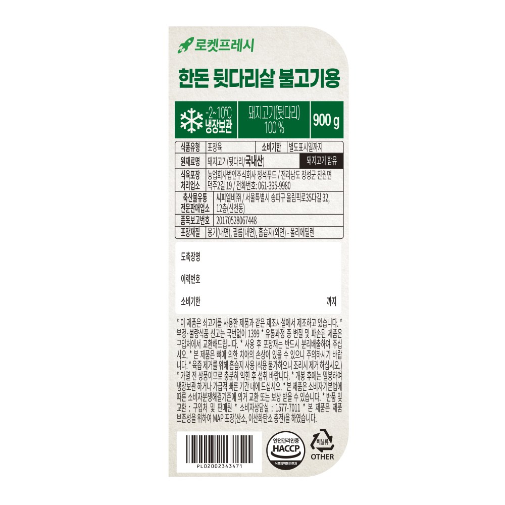 | 배송방법 | 신선/냉장/냉동 | 배송비 | 무료배송 - 로켓프레시 상품 중 15,000원 이상 구매 시 무료배송 - 해당 서비스 가능 지역에 한함 |
