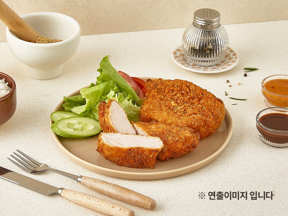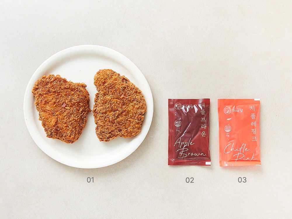 경쾌한 식감을 자랑하는 등심 돈카츠예요. 돼지고기 등심을 사용해 풍부한 육즙을 자랑하는데요. 에어프라이어에 굽기만 하면 식당에서 맛보던 두툼한 돈카츠가 완성되죠. 애플브라운 소스와 치폴레핑크 소스까지 동봉되어 있으니 취향에 맞게 곁들여보세요.
