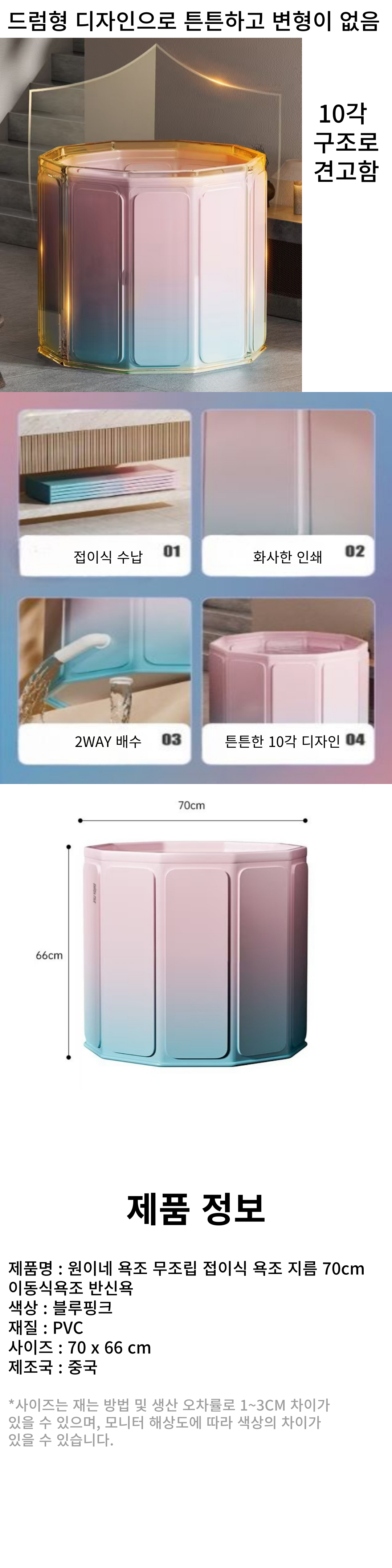 | 품명 및 모델명 | 원이네 욕조 무조립 접이식 욕조 | 인증/허가 사항 | 해당없음 |