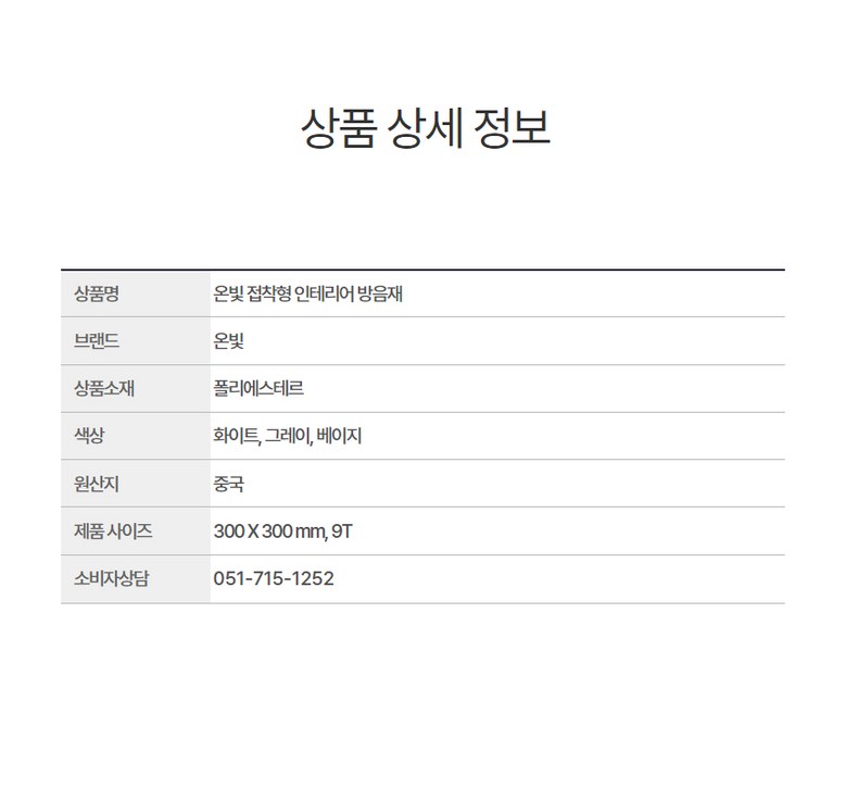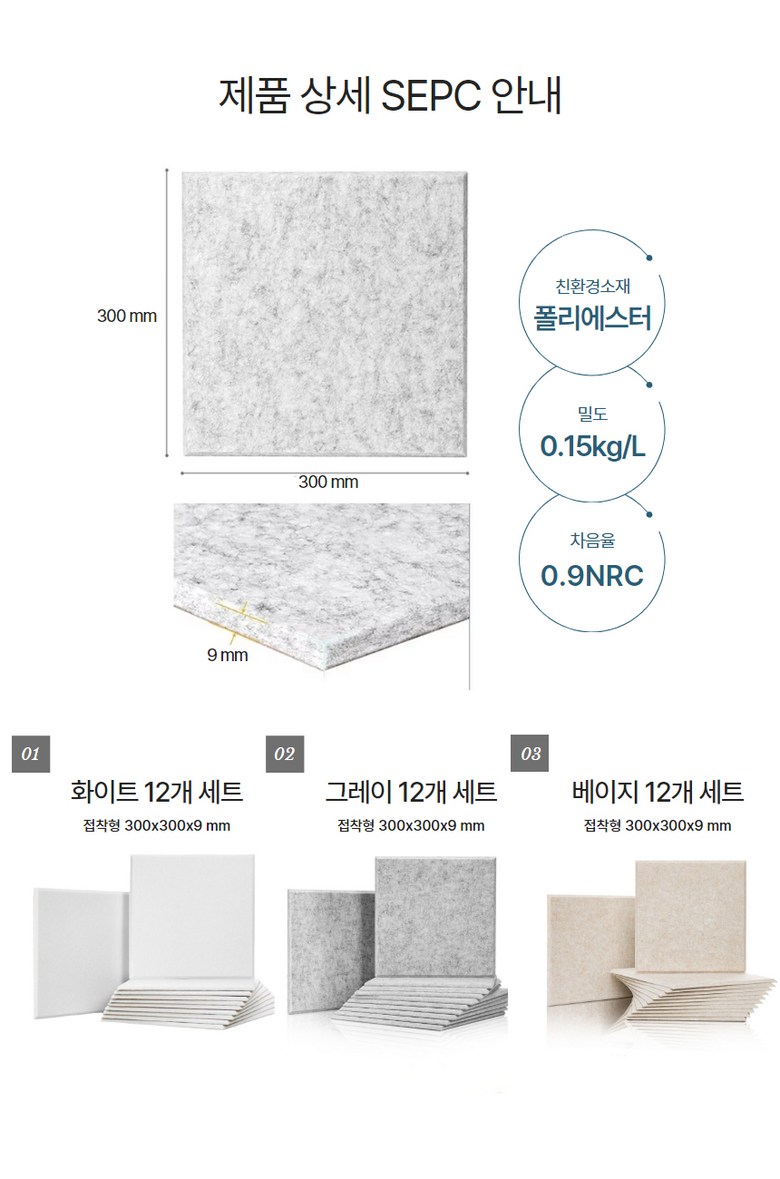 | 품명 및 모델명 | 고급형 폴리에스터 방음재 12p | 인증/허가 사항 | 해당사항없음 |