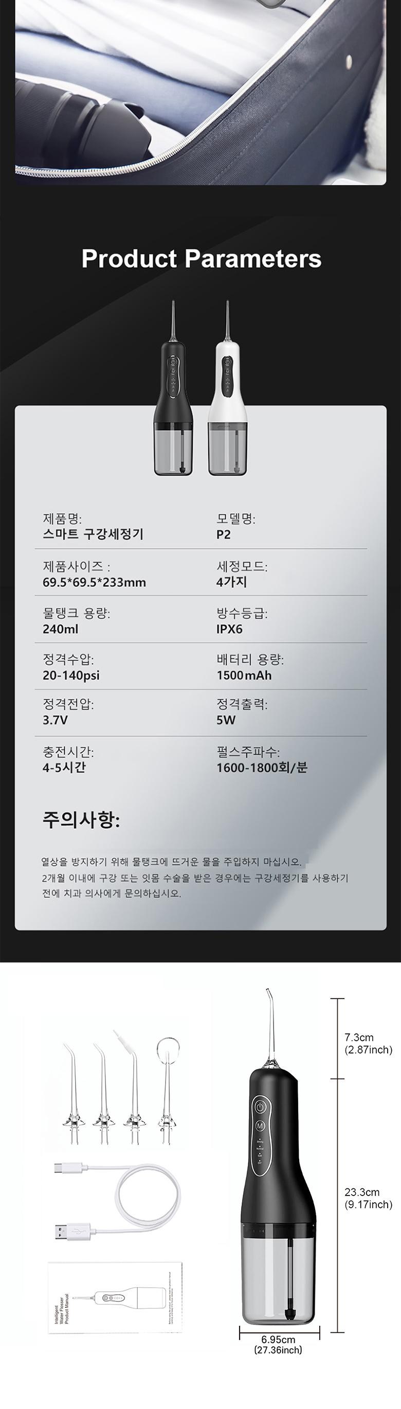 설명서(중국어, 영어, 한국어)*1 노즐*4 충전 케이블*1"