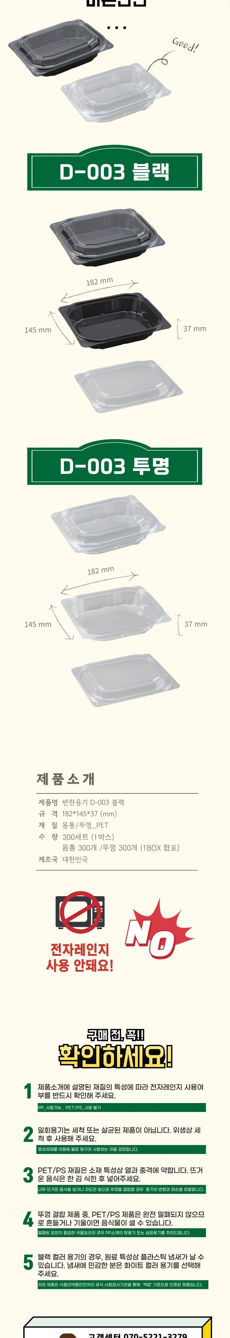 | 품명 및 모델명 | 반찬용기 D-003 검정 | 재질 | 몸통-PET 뚜껑-PET |