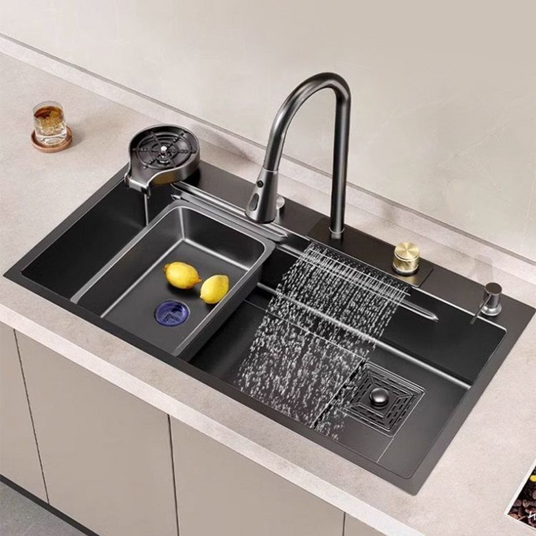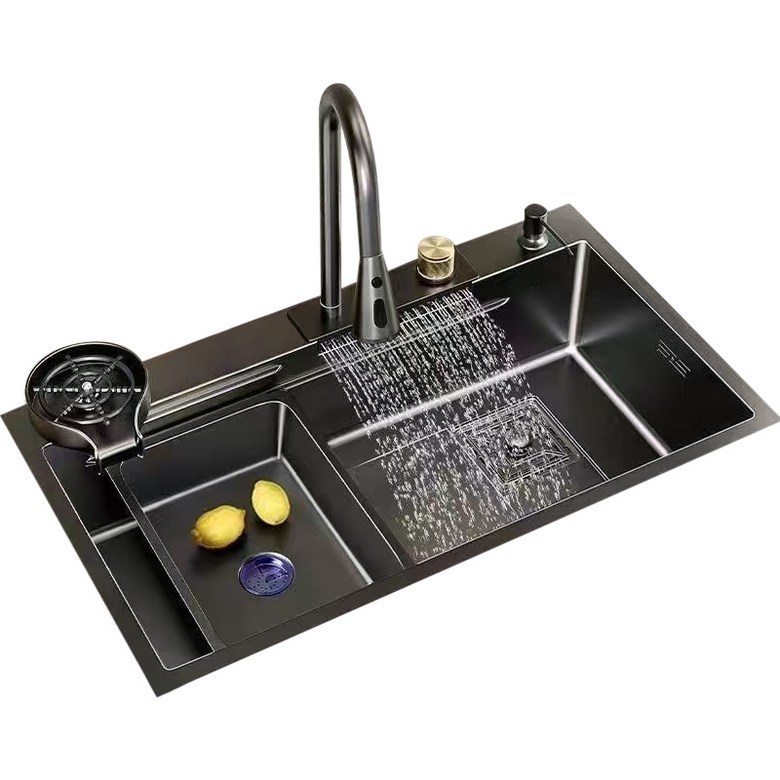 Masarry 현대 다기능 사각 싱크볼 주방 씽크대 싱크대 사각볼 사각씽크볼 + 세정제용기 + 컵세척기, 75CM*45CM, 1세트