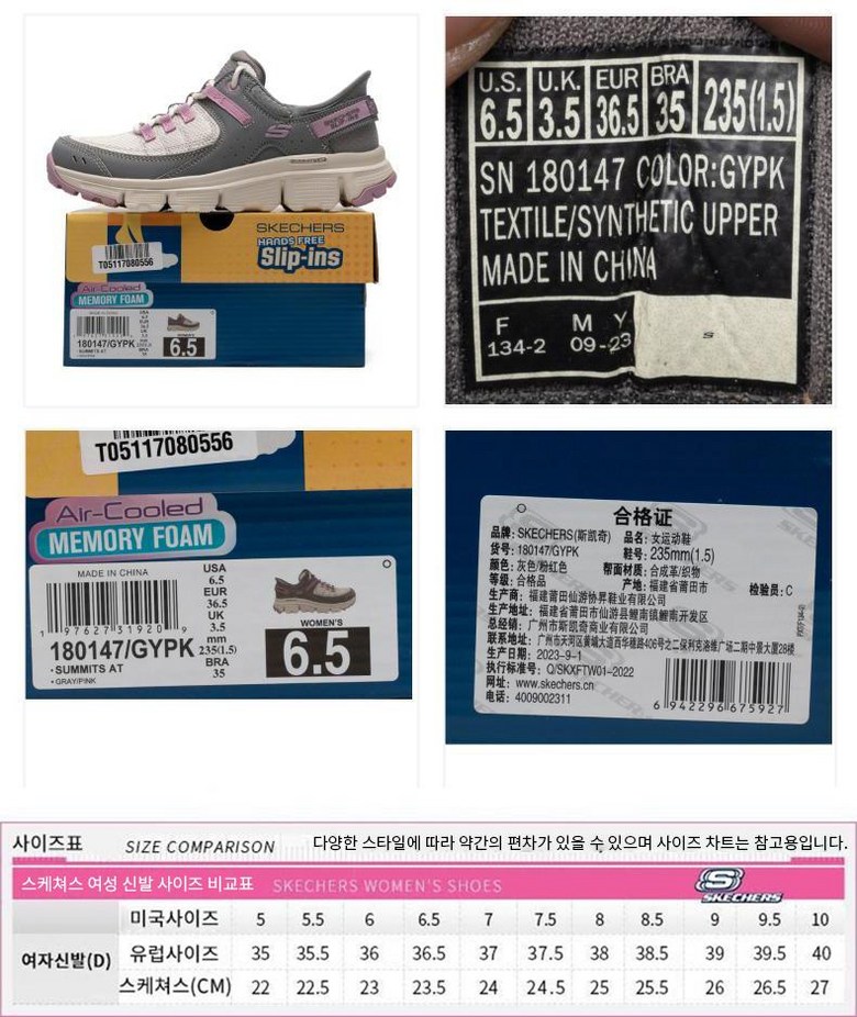 | 치수 | 220mm | 제조자(수입자) | Guangzhou Skechers Commercial Co., Ltd |