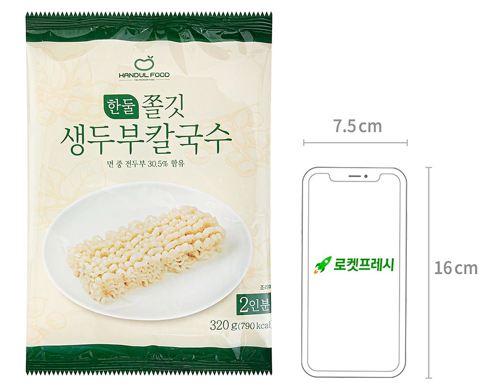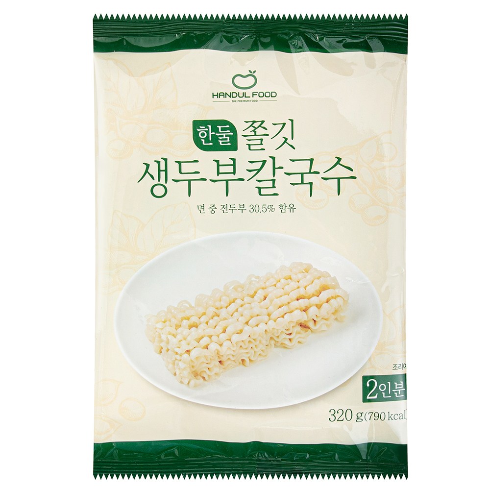 밀가루로 만든 면이 부담스러우시다면, 생두부 칼국수면을 선택해보세요. 비지를 제거하지 않고 만든 전두부를 사용했는데요. 덕분에 고소한 풍미를 더욱 진하게 느낄 수 있어요. 면발이 도톰해 쫄깃한 식감이 돋보인답니다. 멸치 육수에 넣고 끓여 칼국수로 드셔보세요. 닭갈비, 부대찌개의 사리로 활용해도 좋아요.