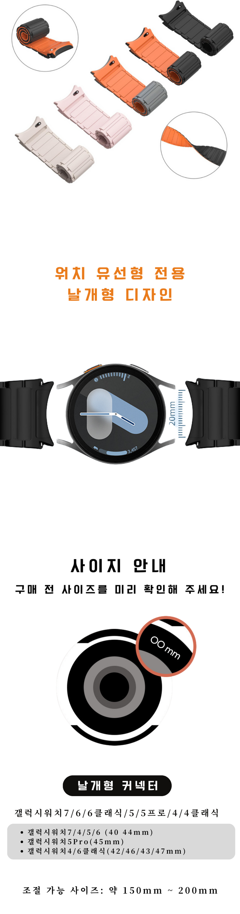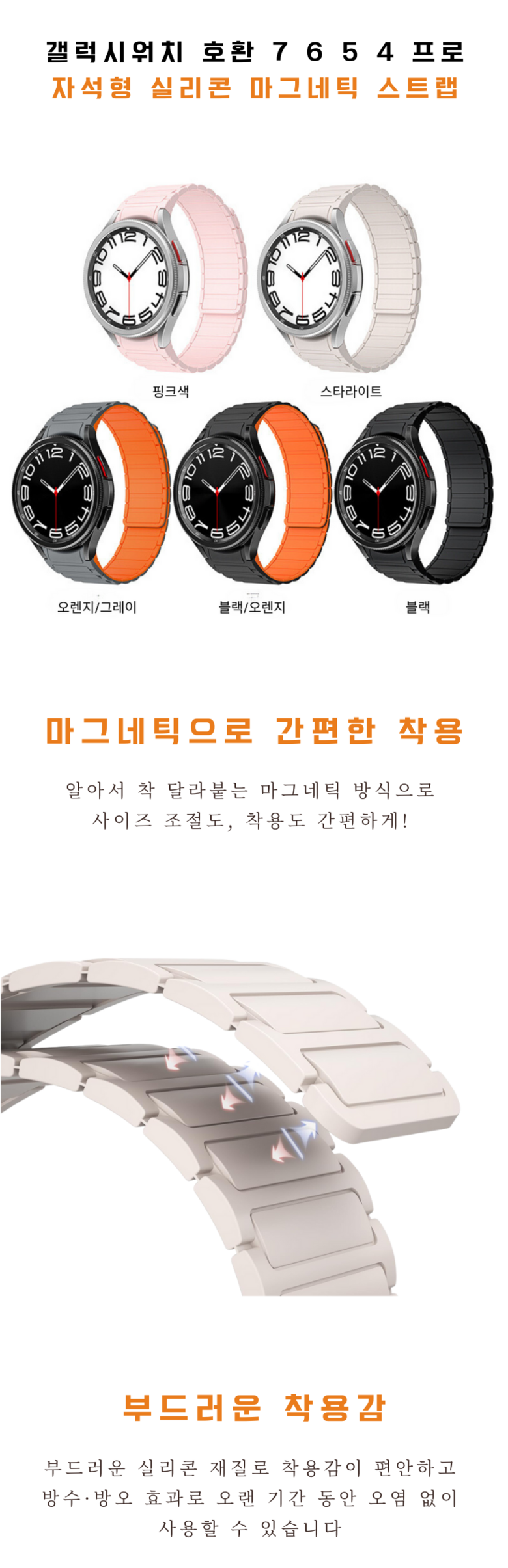| 품명 및 모델명 | 갤럭시워치7 호환 마그네틱 스포츠 실리콘 스트랩 워치6/6클래식/5/5골프/4/4클래식 42mm 46mm 43mm 47mm 45mm 44mm 40mm | 인증/허가 사항 | 해당없음 |