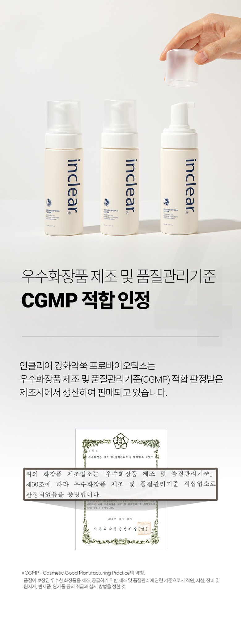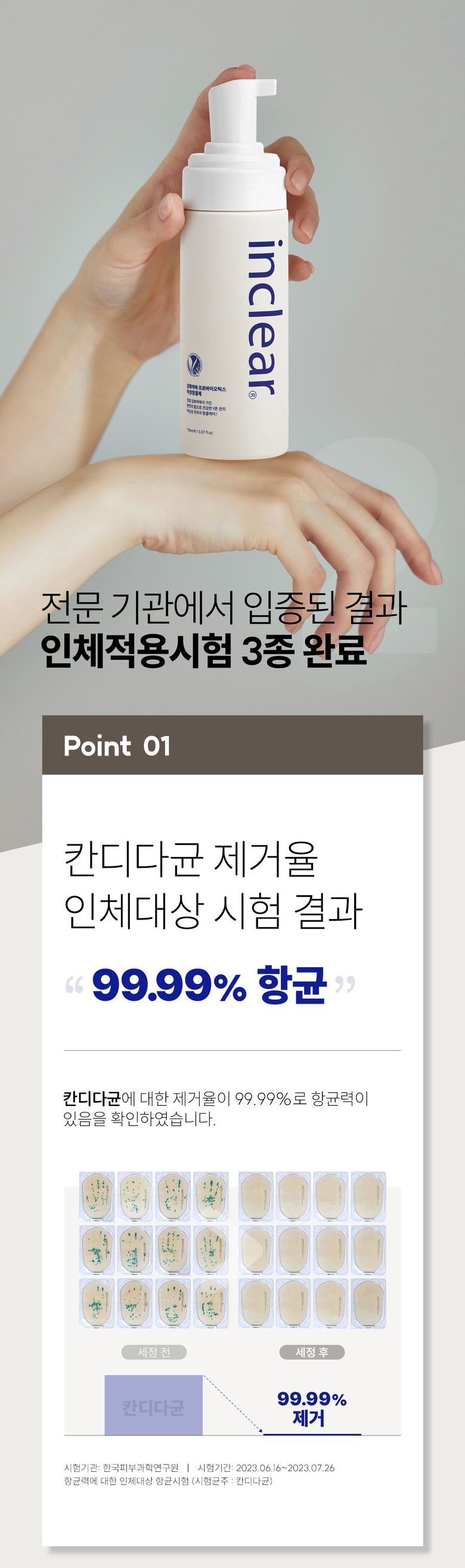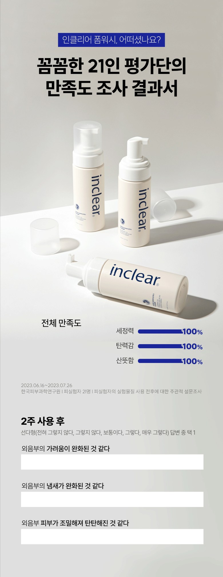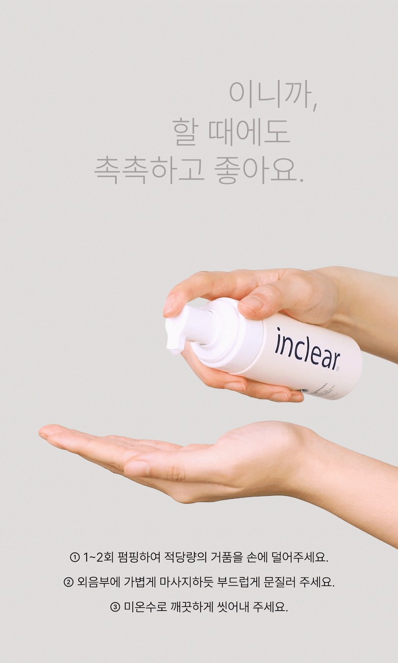 | 용량(중량) | 본품 150ml | 증정품(인클리어 데일리 여성청결티슈 3개입) | 제품 주요 사양 | 모든 피부 타입 |