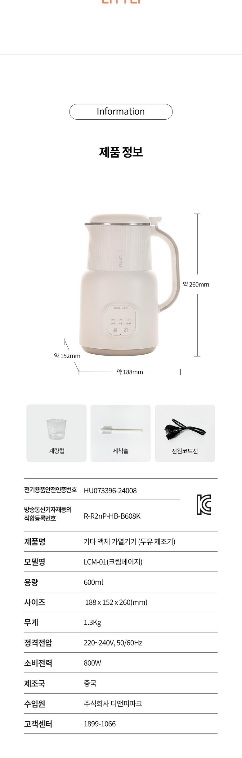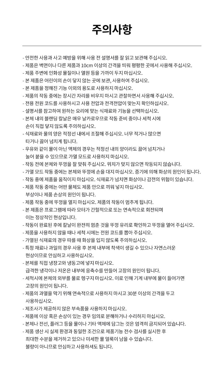 - 구성품: 본품,계량컵,세척솔,전원코드선