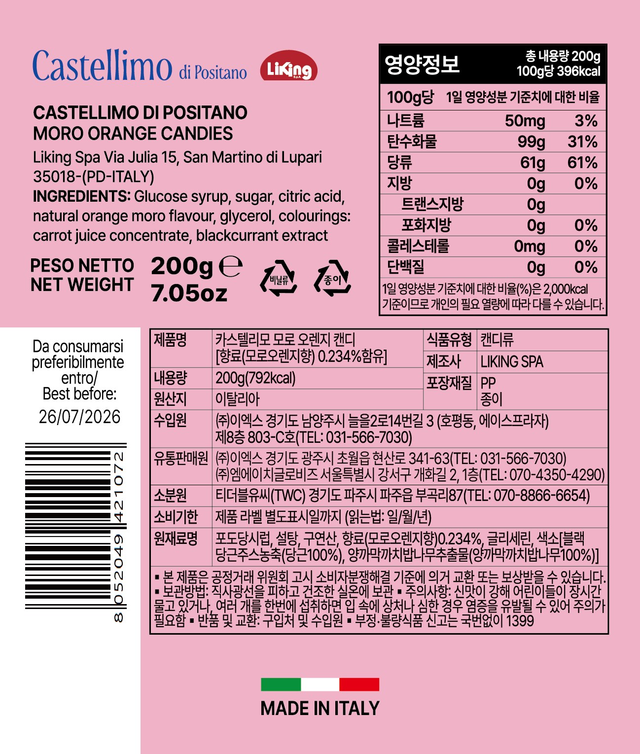 | 생산자 및 소재지 | 컨텐츠 참조 | 제조연월일, 소비기한 또는 품질유지기한 | 소비기한(또는 유통기한) : 2026년 07월 26일 이거나 그 이후인 상품 제조년월일 : 2024년 12월 04일 이후인 제조상품 |
