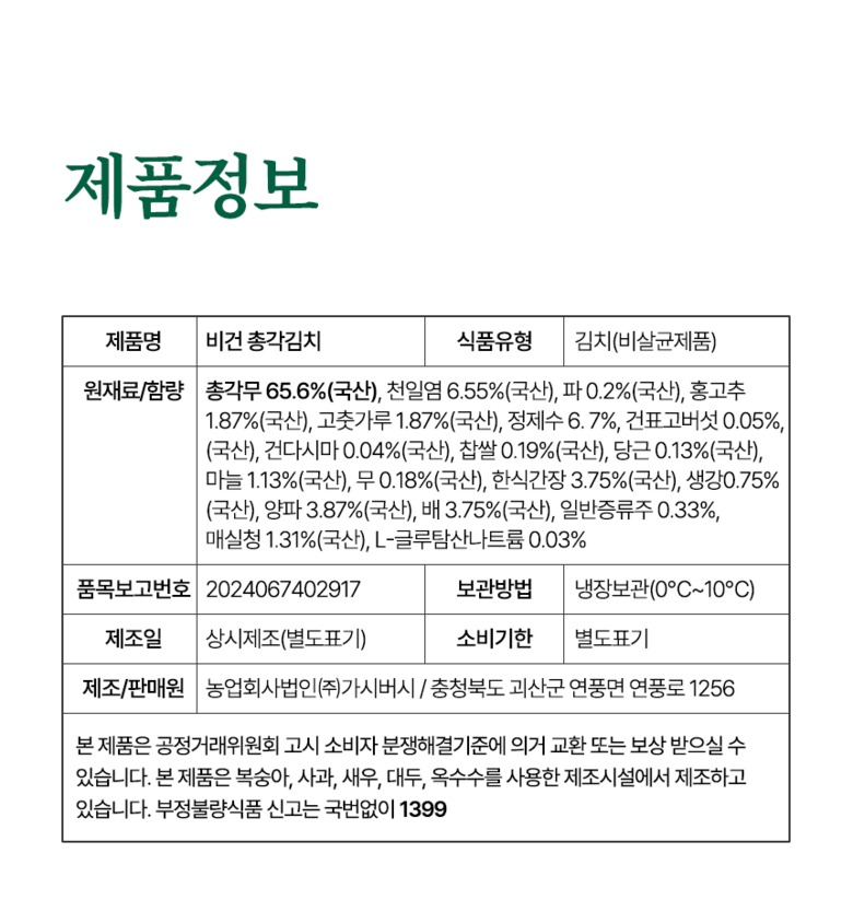 | 생산자 및 소재지 | 상품 상세페이지 참조 | 제조연월일, 소비기한 또는 품질유지기한 | 상품 상세페이지 참조 |
