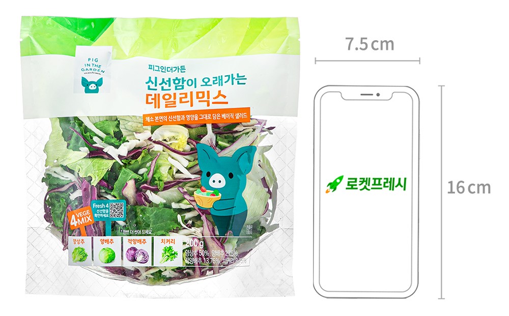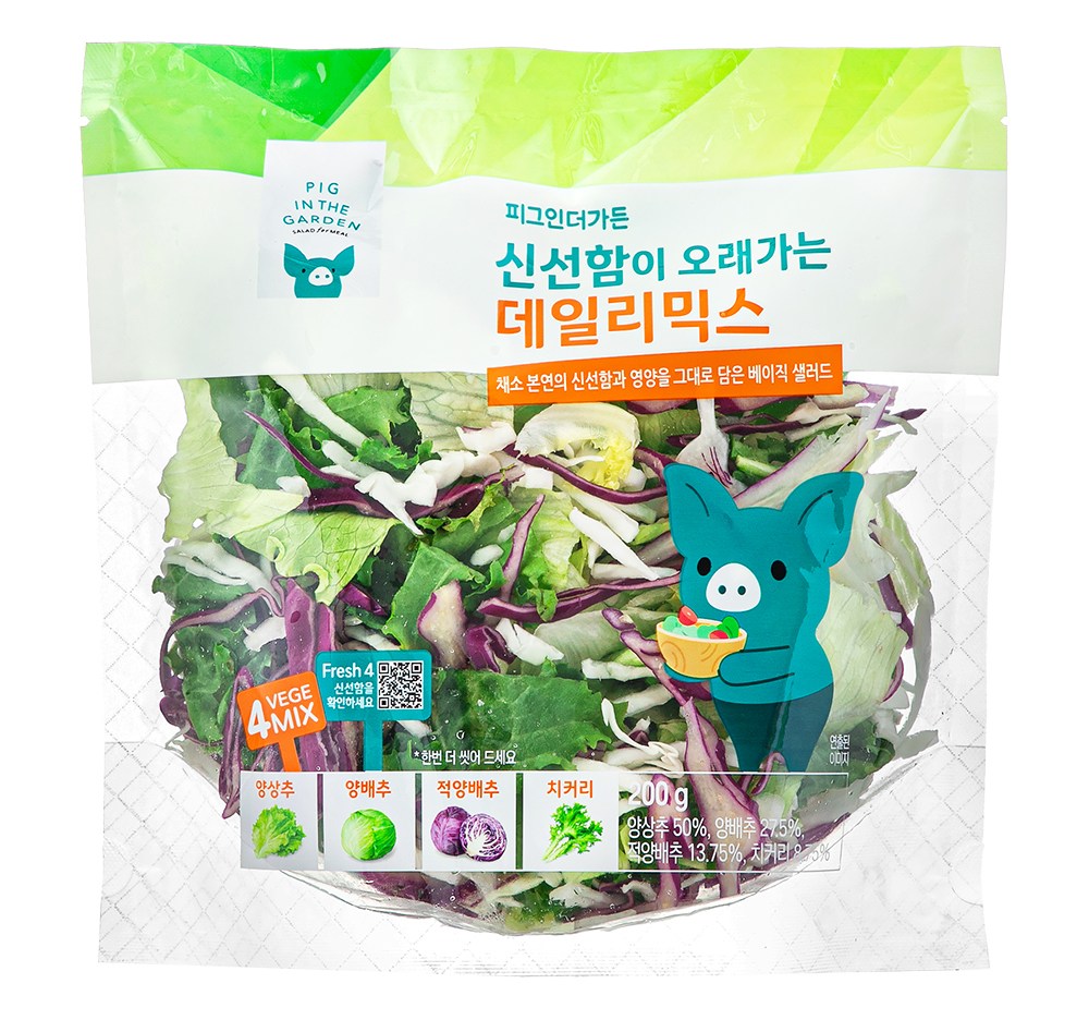 아삭아삭한 샐러드. 맛있지만 채소를 일일이 손질하는 일이 번거로운데요. 그럴 때 신선함이 오래가는 데일리믹스를 만나보세요. 양상추, 양배추, 적양배추, 치커리를 먹기 좋게 손질했어요. 샐러드 맞춤형으로 밀폐 포장해 신선함을 유지했답니다. 한입 먹으면, 싱그러운 풍미가 입안 가득 퍼져요.