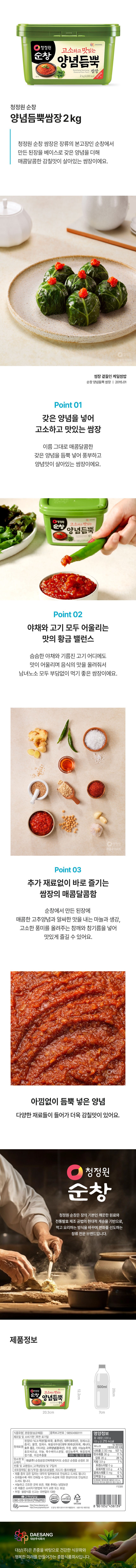 | 제품명 | 청정원순창양념듬뿍쌈장 | 식품의 유형 | 컨텐츠 참조 |