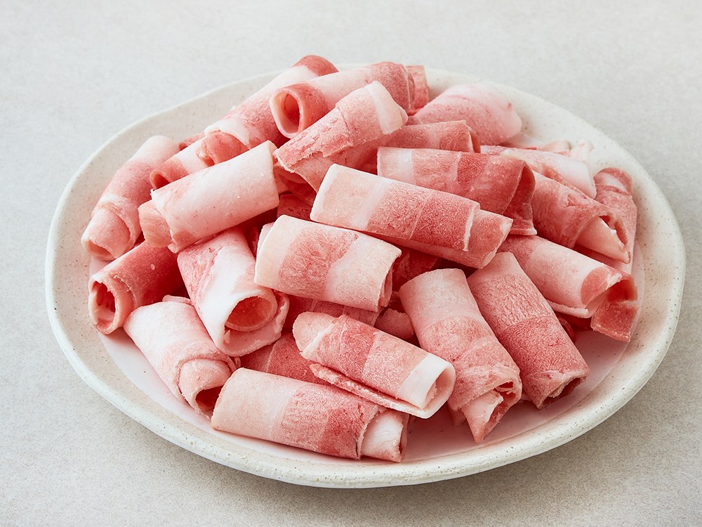 부드러운 살코기와 쫀득한 지방이 조화롭게 어우진 삼겹살. 돌돌 말릴 정도로 얇게 슬라이스했습니다. 노릇하게 구우면, 풍성한 육즙과 고소한 풍미를 즐길 수 있어요. 그대로 불판 위에 올려도 좋고, 숙주를 넣고 매콤한 볶음 요리로 만들어도 훌륭합니다.