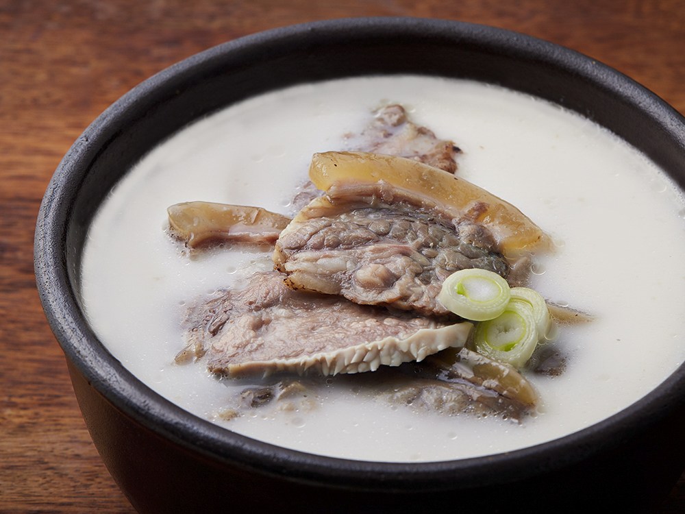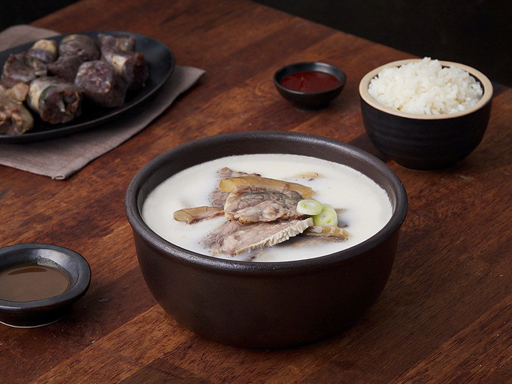 1. 냄비에 진국 진한 사골육수와 소고기수육을 넣어주세요.