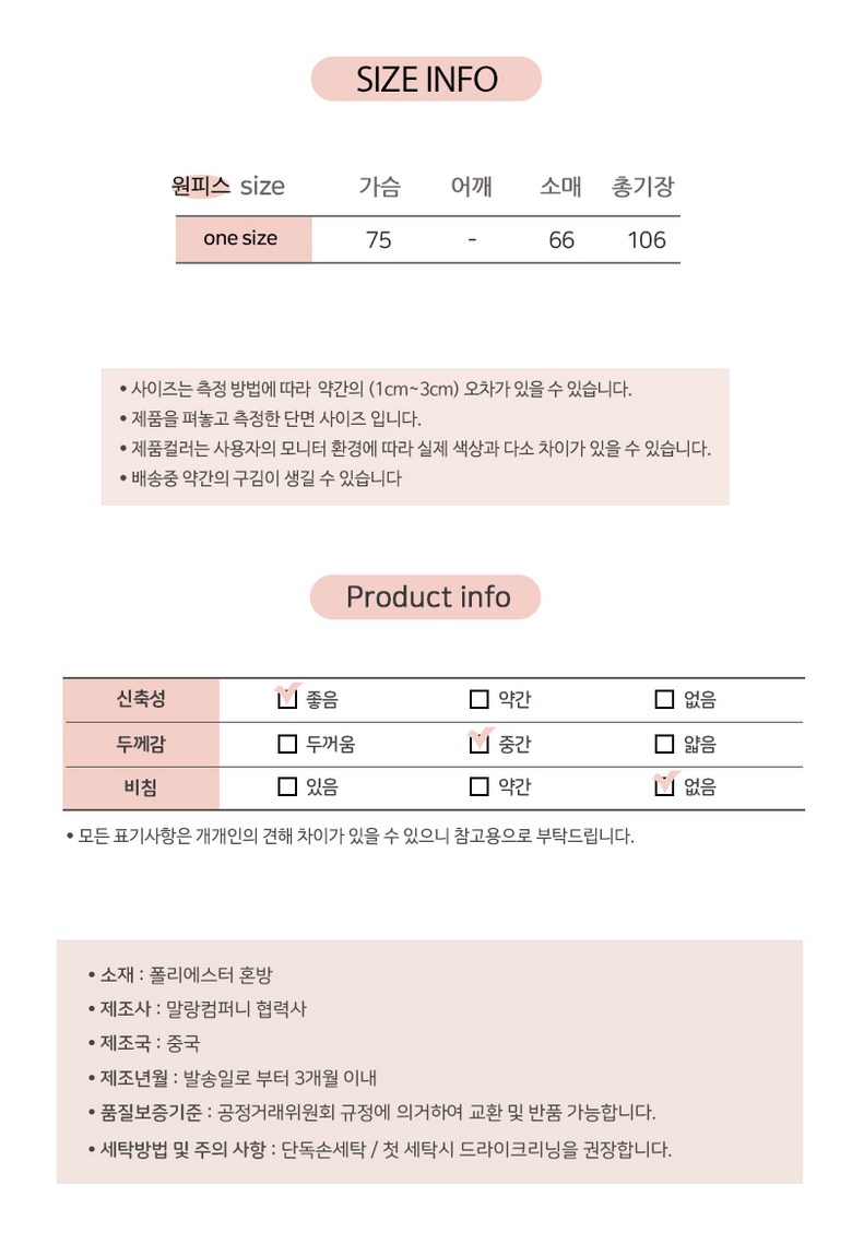 | 제조국 | 상품 상세페이지 참조 | 세탁방법 및 취급시 주의사항 | 상품 상세페이지 참조 |