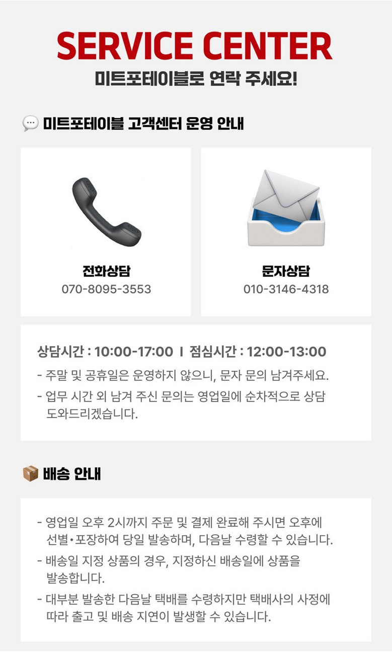 - 공개 게시판이므로 전화번호, 메일 주소 등 고객님의 소중한 개인정보는 절대 남기지 말아주세요.