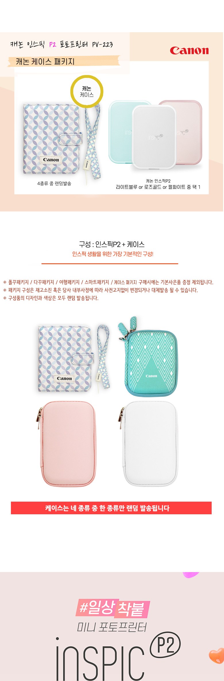 캐논 인스픽 P2 포토프린터 휴대용 + 인화지 60p + 케이스 세트