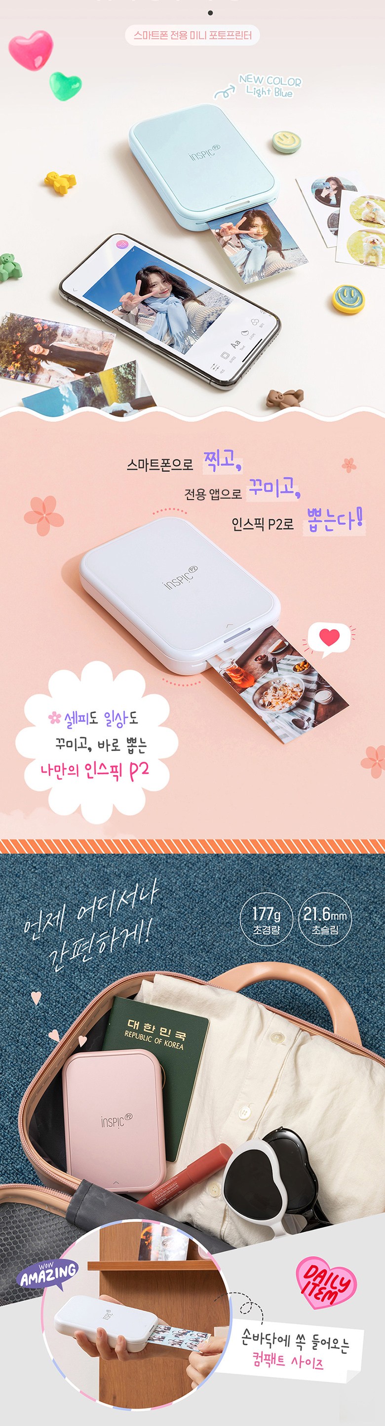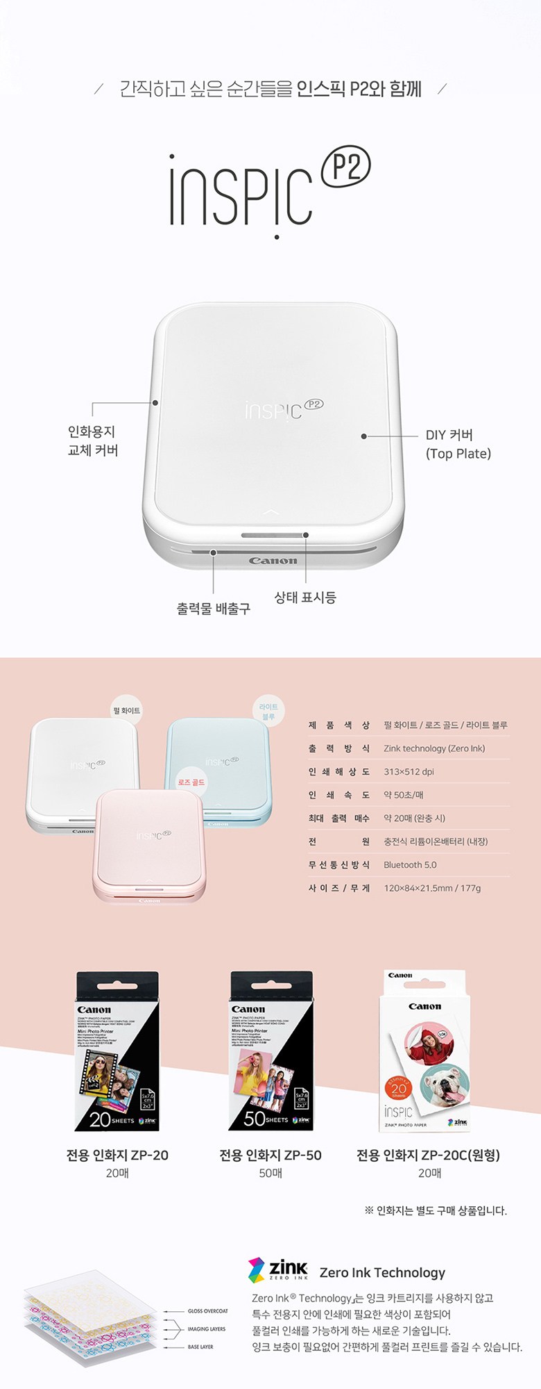 | 품명 및 모델명 | 캐논 인스픽 P2 라이트블루 포토프린터 + 인화지 총 60매 + 케이스(랜덤) / PV-223A-BL | KC 인증정보 | 본품:R-R-ceb-PP1003 / 전지:YU10505-21003 |
