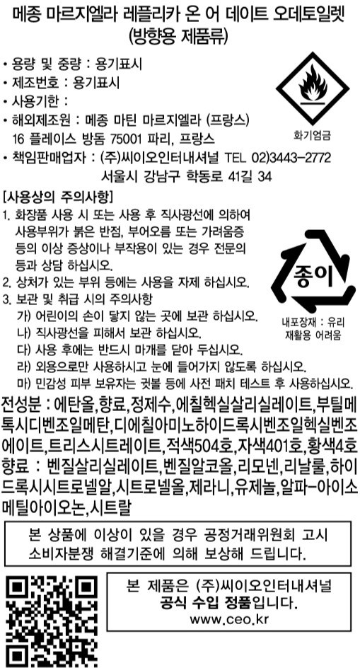 | 화장품제조업자, 화장품책임판매업자 및 맞춤형화장품판매업자 | 컨텐츠 참조 | 제조국 | 프랑스 |