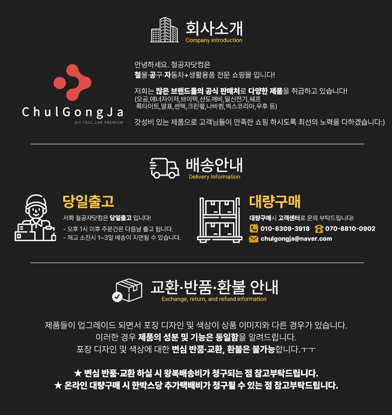 - ㆍ교환/반품에 관한 일반적인 사항은 판매자가 제시사항보다 관계법령이 우선합니다.
