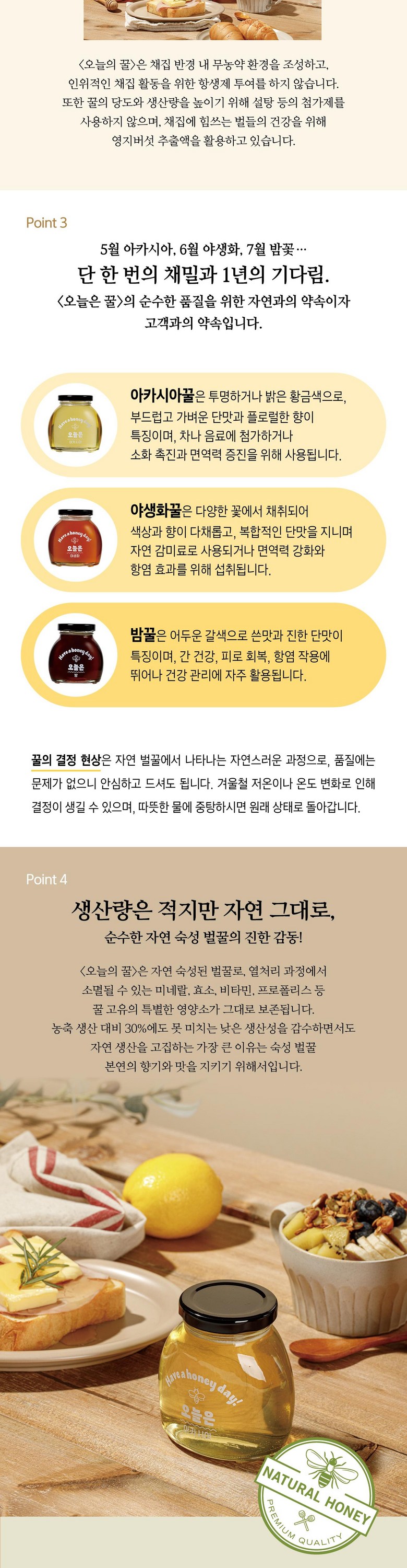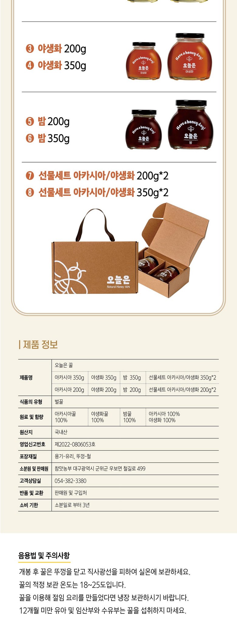 | 품목 또는 명칭 | [오늘은 꿀] 밤꿀 | 포장단위별 내용물의 용량(중량),수량,크기 | 200g / 350g |