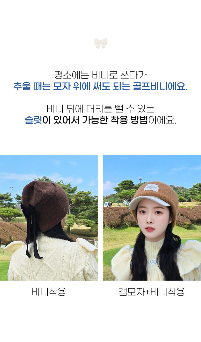 리본리 골프 비니 여성용 니트 백리본 비니 빅사이즈 골프모자