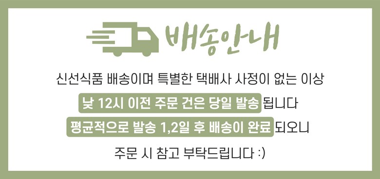 | 배송기간 | ㆍ도서산간 지역 등은 배송에 3-5일이 더 소요될 수 있습니다. - 천재지변, 물량 수급 변동 등 예외적인 사유 발생 시, 다소 지연될 수 있는 점 양해 부탁드립니다. | ||